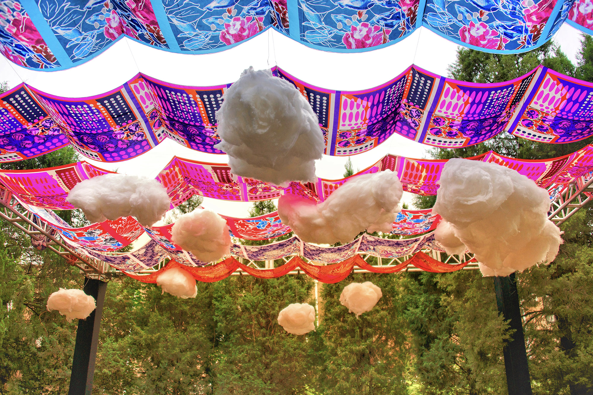 为了让现场嘉宾能更真切感受到秋天天空的旖旎,本次发布会通过色彩绚丽的秋冬新品与纯白云朵,将活动现场打造成极具诗意的绚丽天空。站在“天空”下的嘉宾,感受着从缝隙里透出的斑驳光影,浪漫氛围令人难以抵挡。