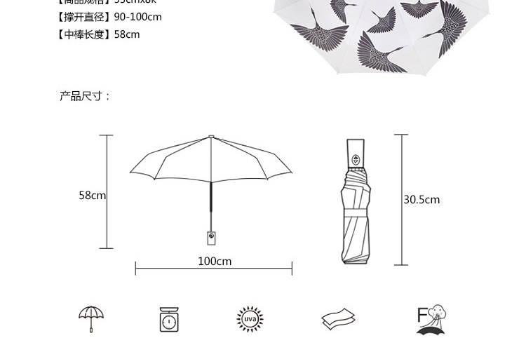 春夏新品 玛丽亚古琦(MARJA KURKI)芬兰太阳伞防紫外线晴雨伞超轻防晒遮阳伞三折自动伞