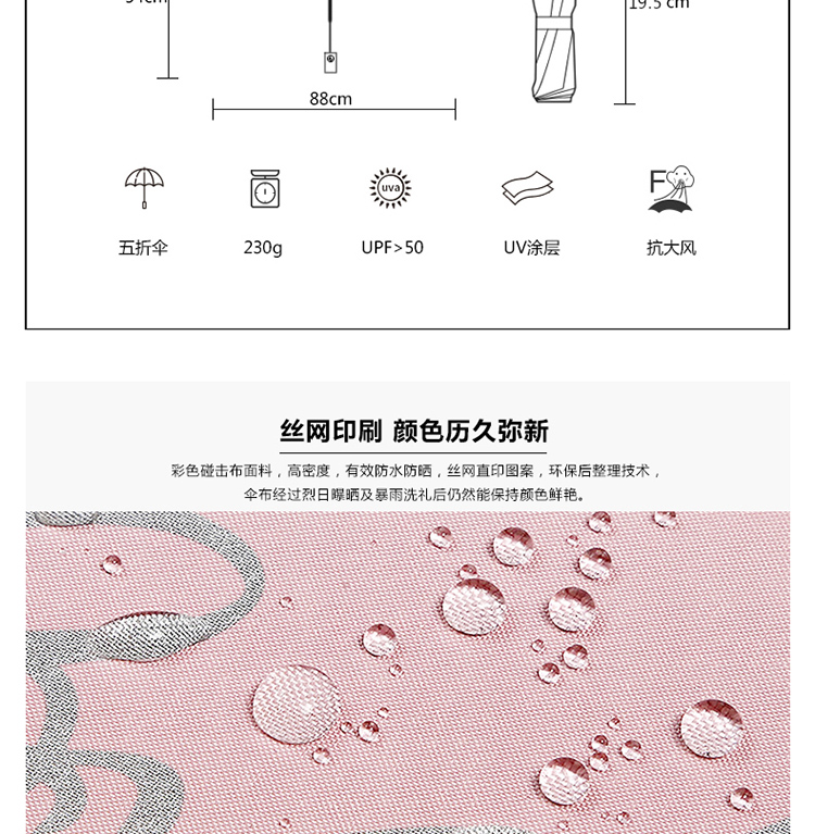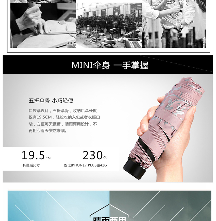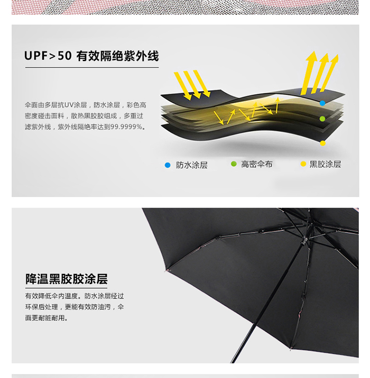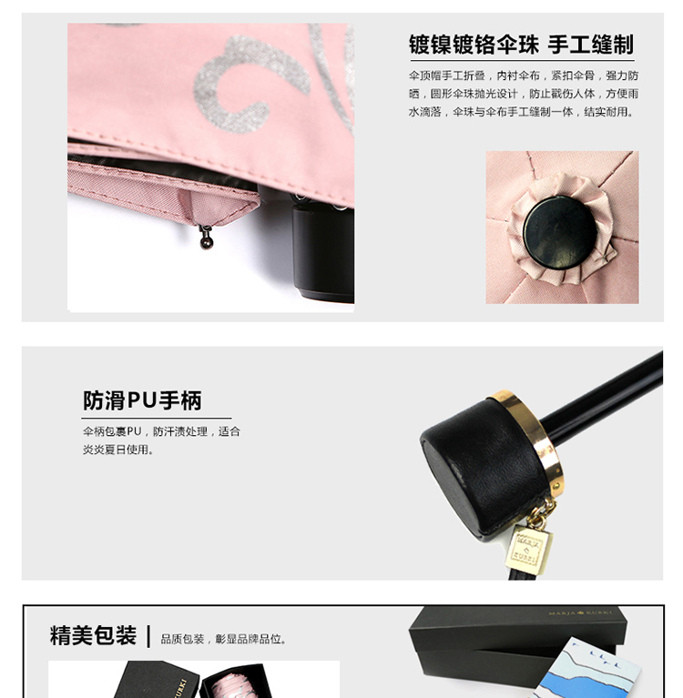 线上专享 玛丽亚古琦(MARJA KURKI)芬兰太阳伞防紫外线超轻黑胶防晒遮阳伞五折叠晴雨伞两用