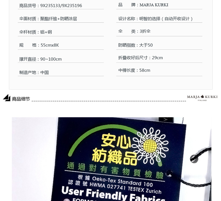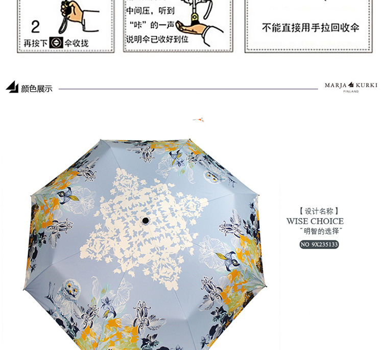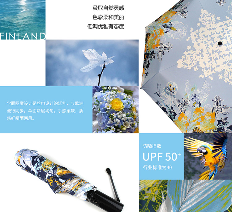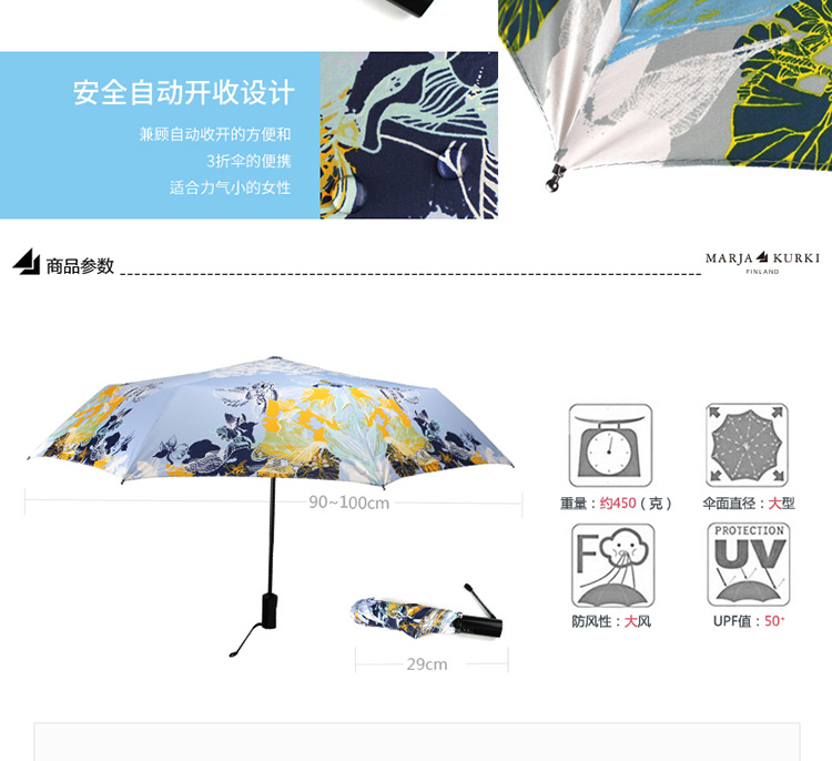 经典系列 玛丽亚古琦(MARJA KURKI)太阳伞防紫外线黑胶防晒遮阳伞全自动开收晴雨伞