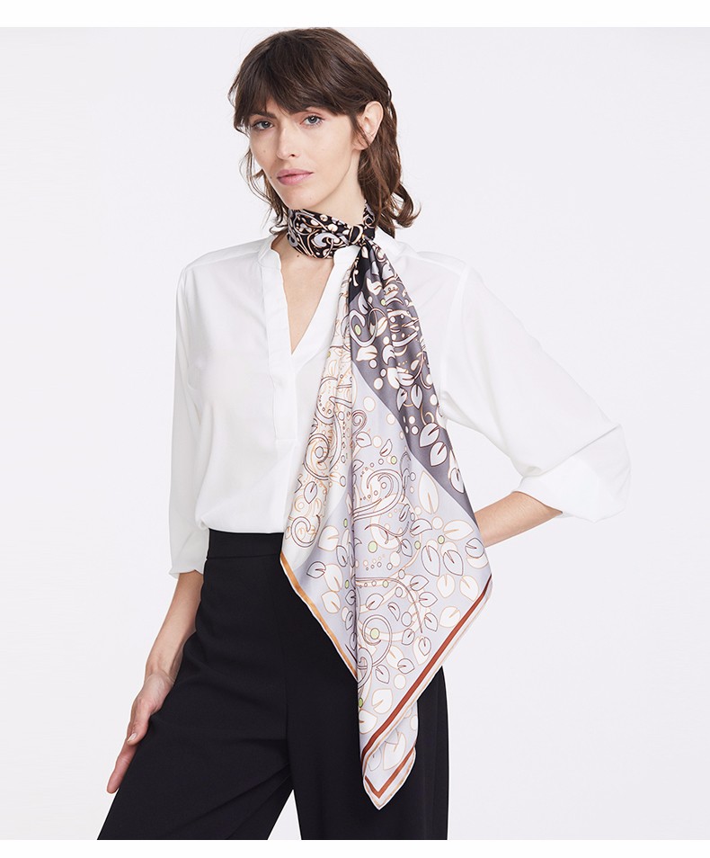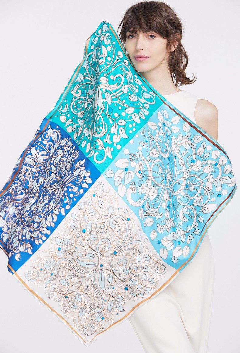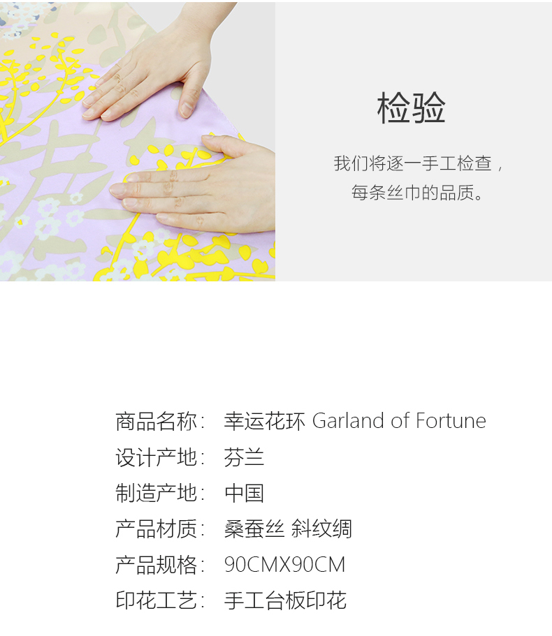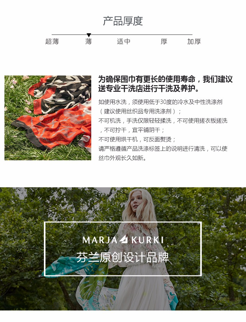 2019春夏新款 玛丽亚.古琦(MARJA KURKI)真丝丝巾女士大方巾 高档桑蚕丝长巾 斜纹绸巾工艺 幸运花环