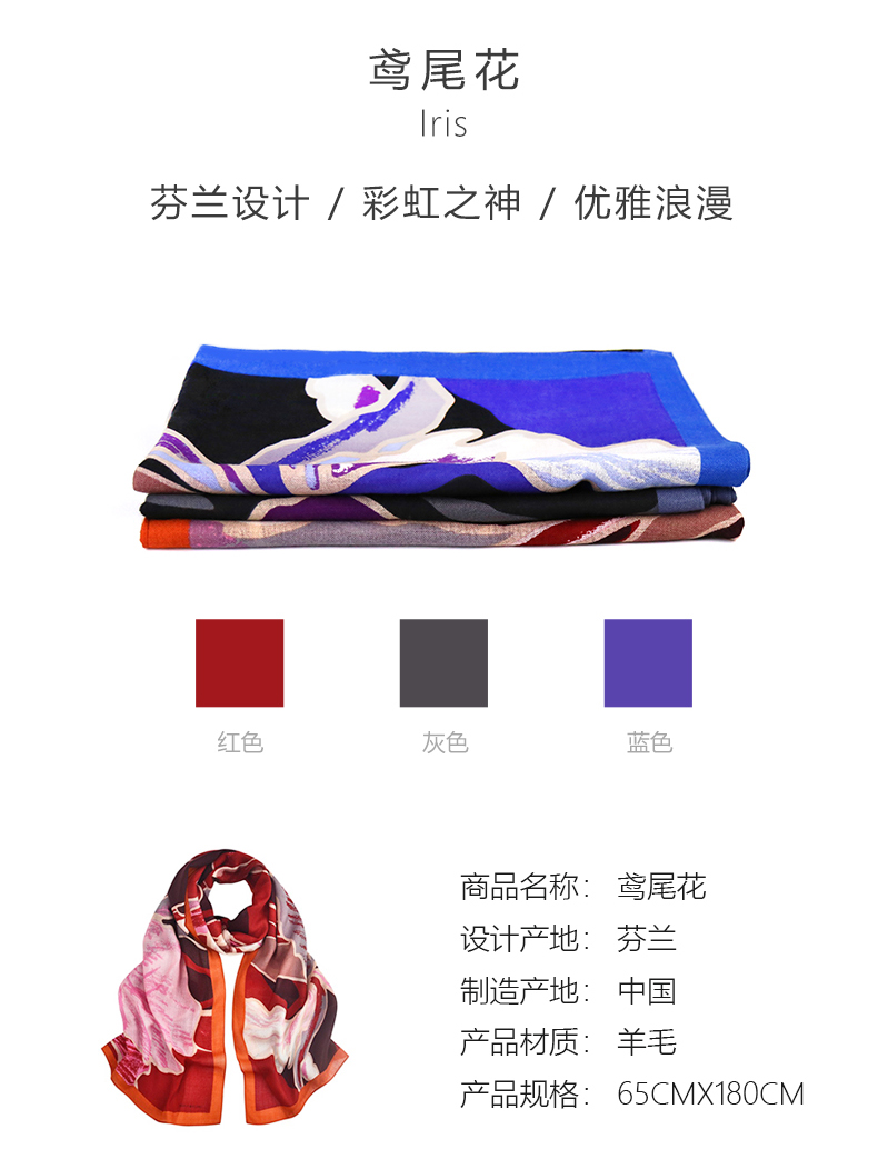 2019秋冬新品 玛丽亚古琦(MARJA KURKI) 羊毛围巾 鸢尾花