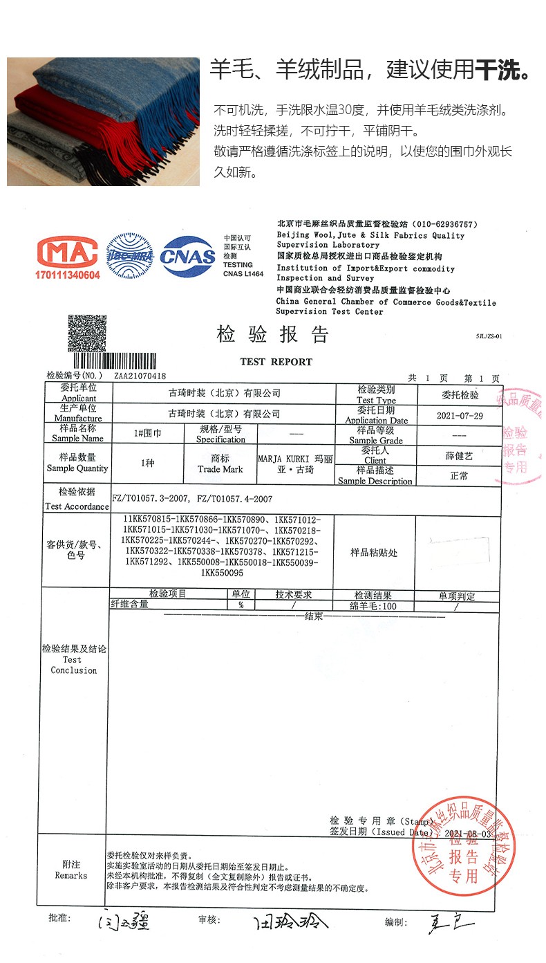 2021秋冬新款 玛丽亚古琦(MARJAKURKI)围巾 最好的时节