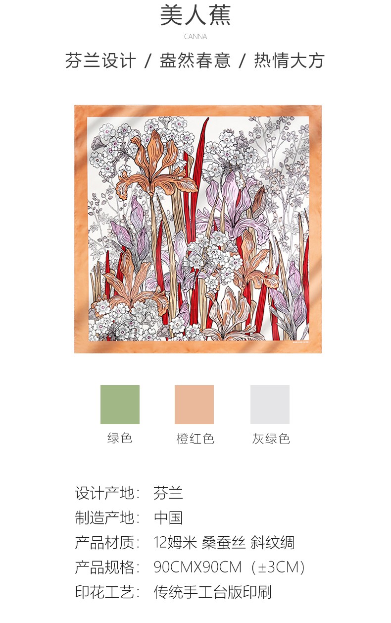 2024新款 玛丽亚古琦(MARJAKURKI)真丝丝巾【美人蕉】