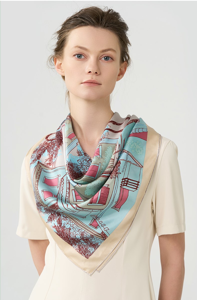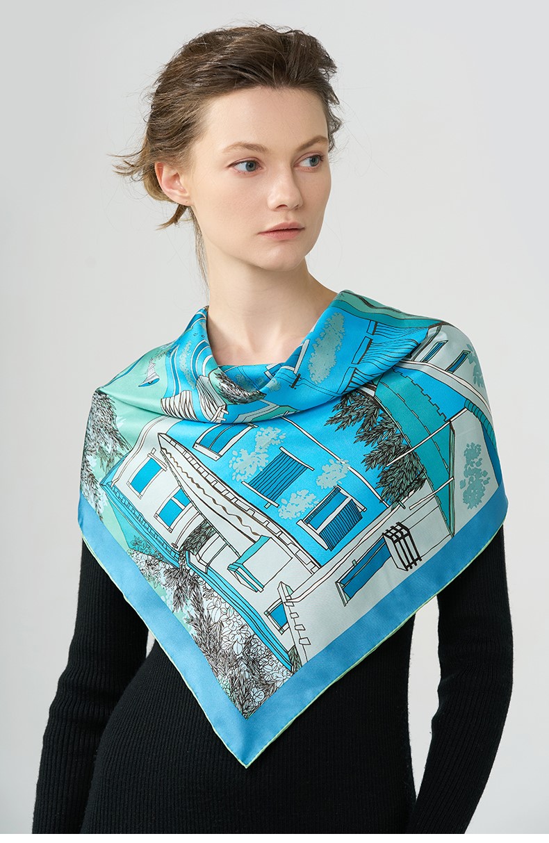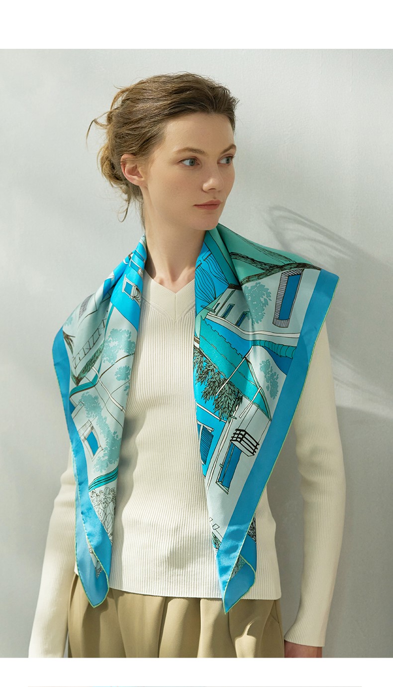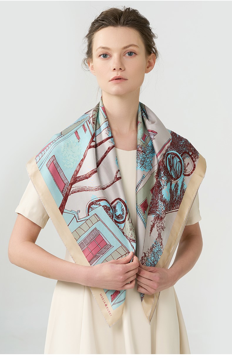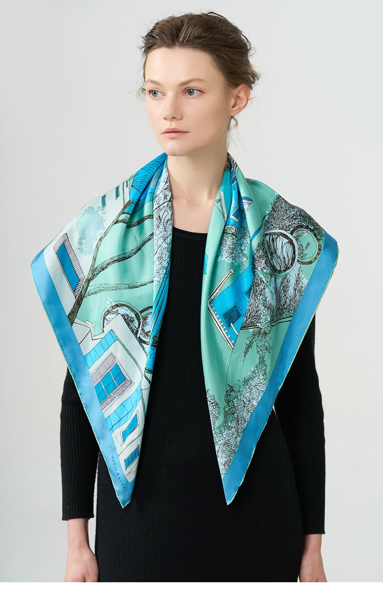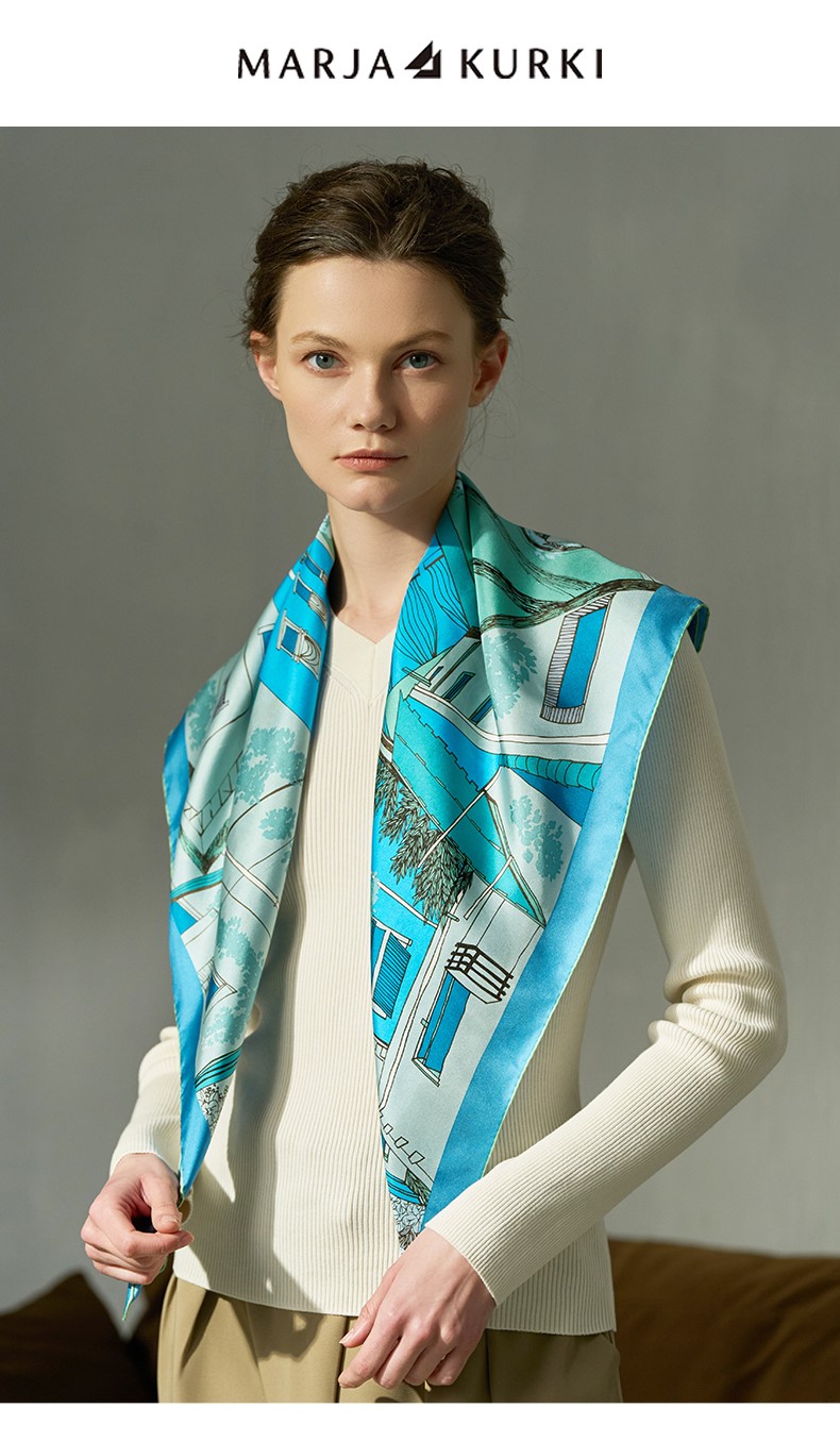 2024新款 玛丽亚古琦(MARJAKURKI)真丝丝巾【意大利小镇】