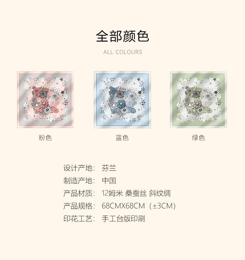 2025新款 玛丽亚古琦(MARJAKURKI)真丝丝巾【花坛】