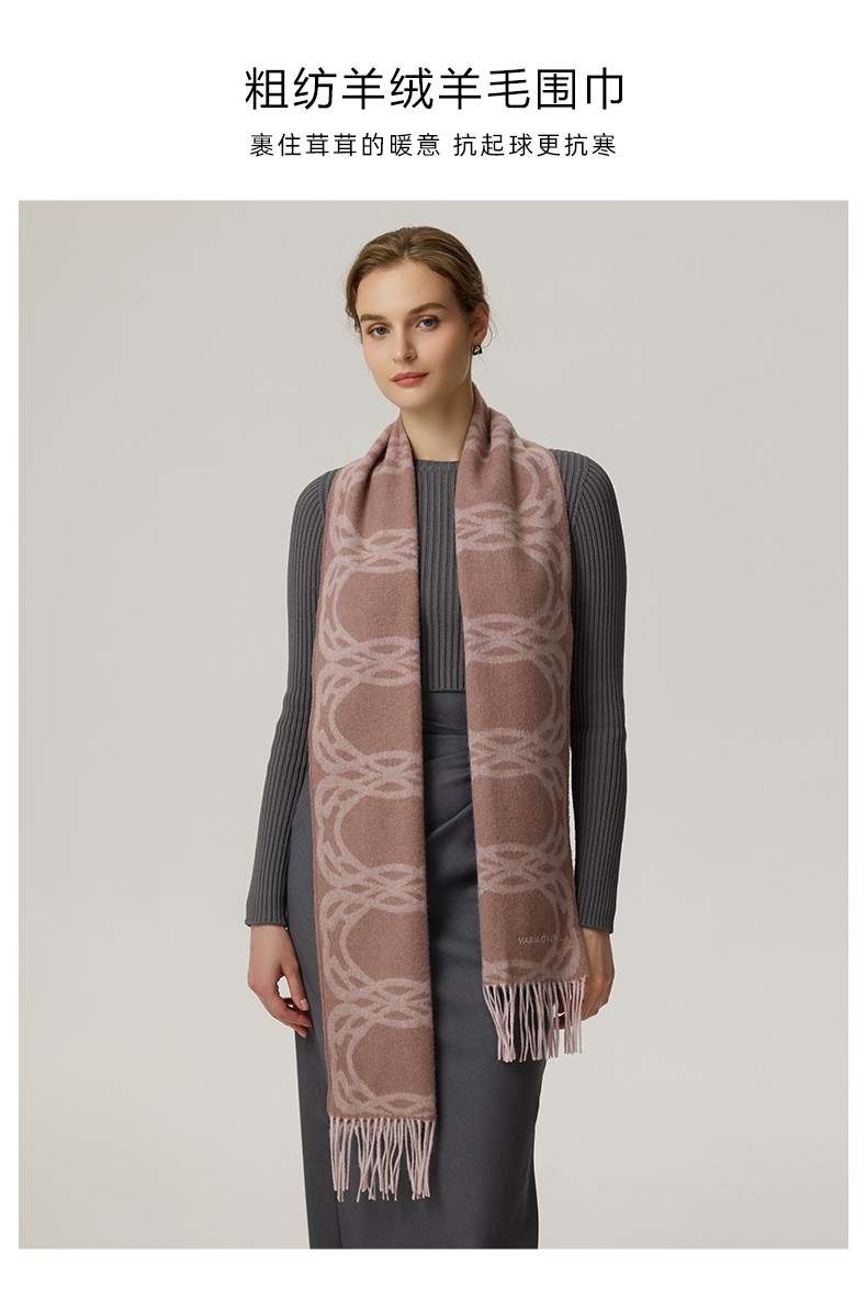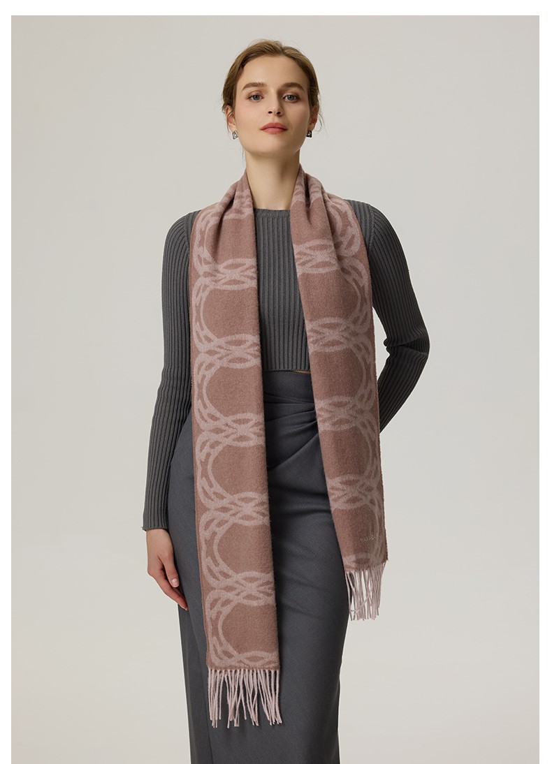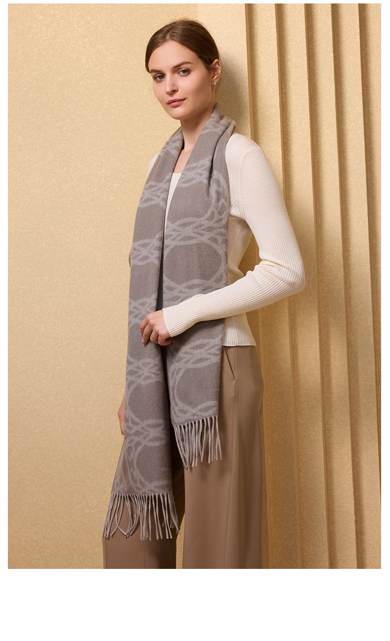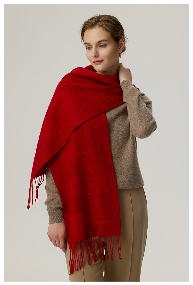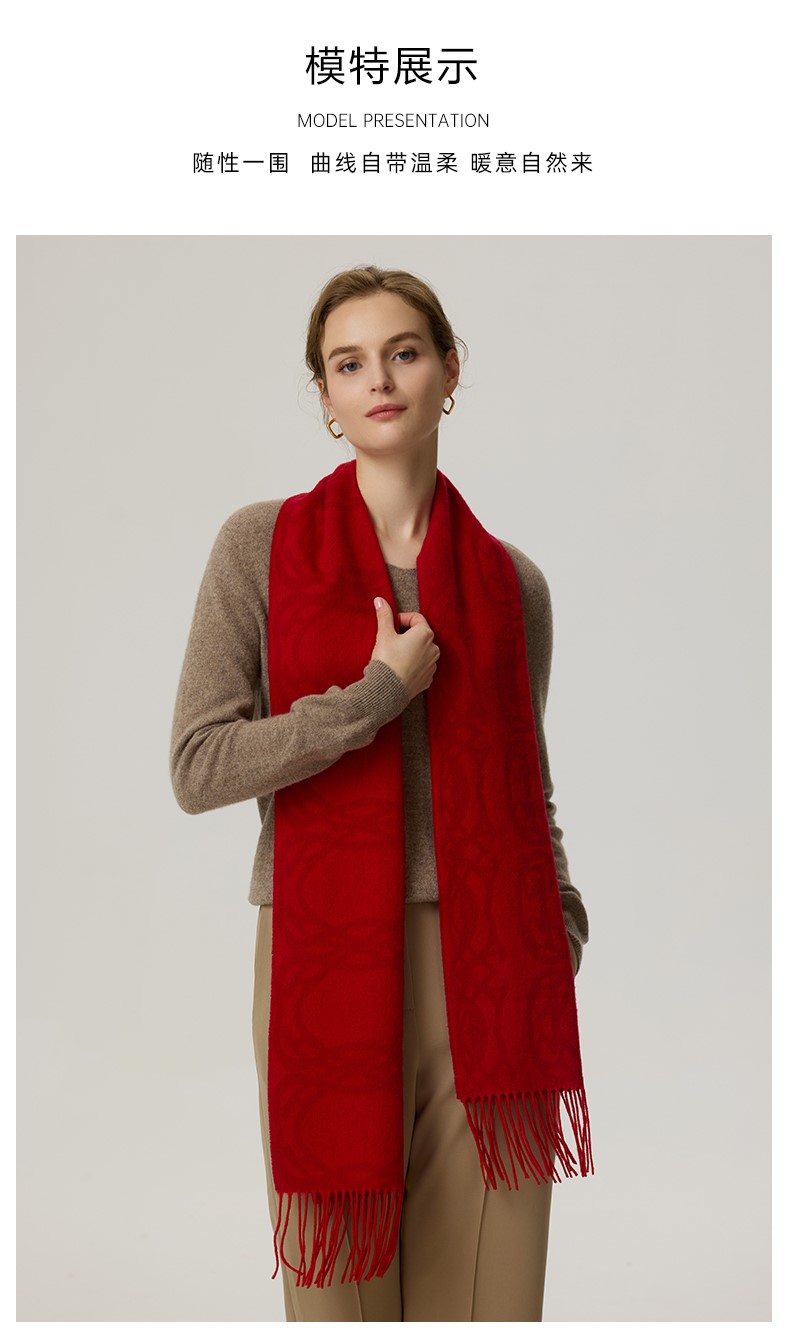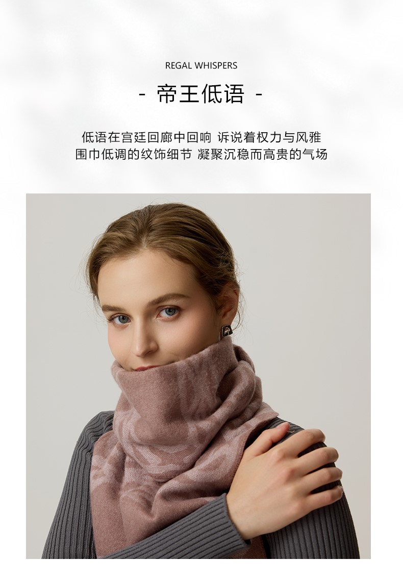 低语在宫廷回廊中回响,如同遗落的尊贵秘密,诉说着权力与风雅。本款围巾凝聚沉稳而高贵的气场。 运用深酒红、墨绿与暗金色系,搭配低调的纹饰细节,整体彰显克制却难掩的皇家气质。