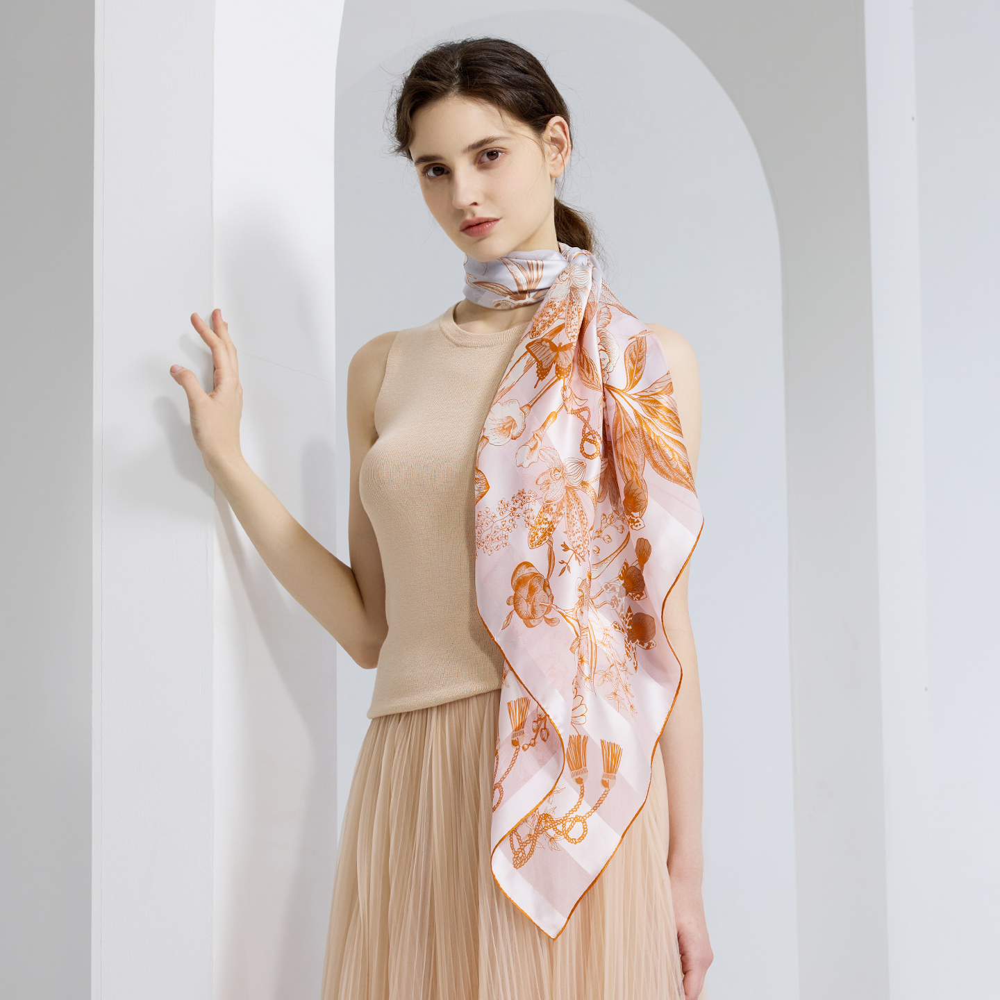 玛丽亚.古琦(MARJA KURKI)真丝丝巾女士大方巾 高档桑蚕丝长巾 斜纹绸巾工艺 幸运花环