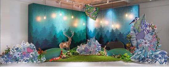 在钢筋水泥的都市里,MARJA KURKI营造了一处意想不到的翠色秘境,满载鲜花,可爱的麋鹿与熊。体现了MARJA KURKI对自然理念的推崇,从视觉到触觉,从味觉到听觉,跃然丛林,激活一切感官。