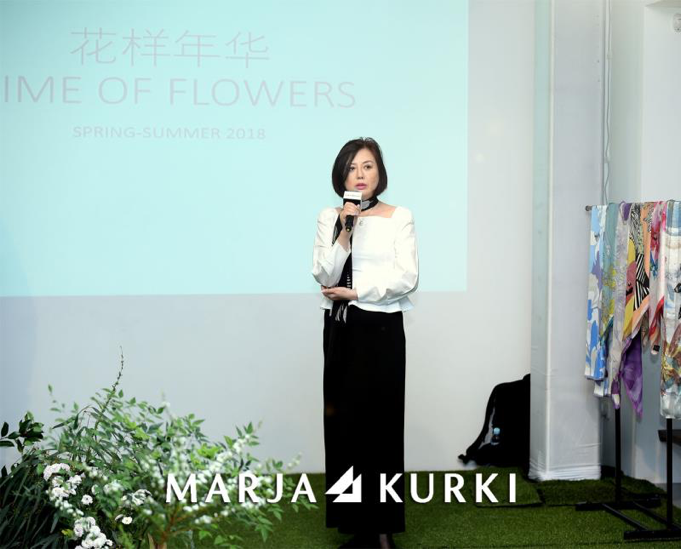 通过MARJA KURKI中国区总裁、芬兰商会董事会副会长薛锐霞(Caroline)女士形象生动地介绍令贵宾对即将上市的“花漾年华”系列丝巾充满了期待与喜爱。