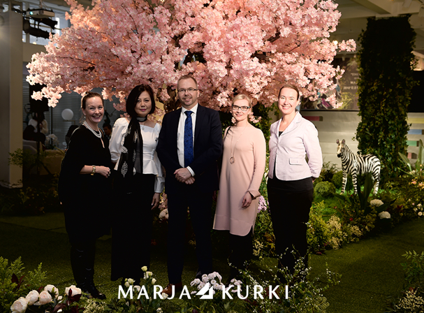 ▲MARJA KURKI中国区总裁薛锐霞(Caroline)女士携芬兰驻沪总领事万伯阳(Jan Wahlberg)先生
