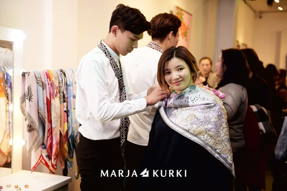 此次活动现场,MARJA KURKI中国区总裁薛锐霞(Caroline)女士携芬兰驻沪总领事万伯阳(Jan Wahlberg)先生,芬兰驻沪副总领事Maria Halava-Napoles女士,上海芬兰商会执行董事Maria Matar女士,以及来自全国90余位的媒体朋友、美妆时尚达人、品牌好友齐聚现场,一同欣赏MARJA KURKI丝巾的全新风尚。