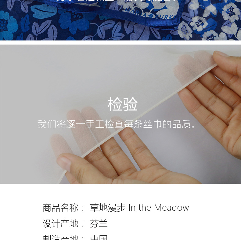 2018新款 玛丽亚古琦(MARJA KURKI)真丝丝巾 女士长丝巾桑蚕丝“草地漫步”