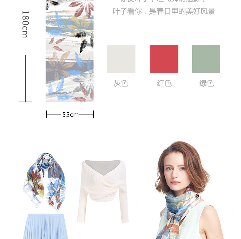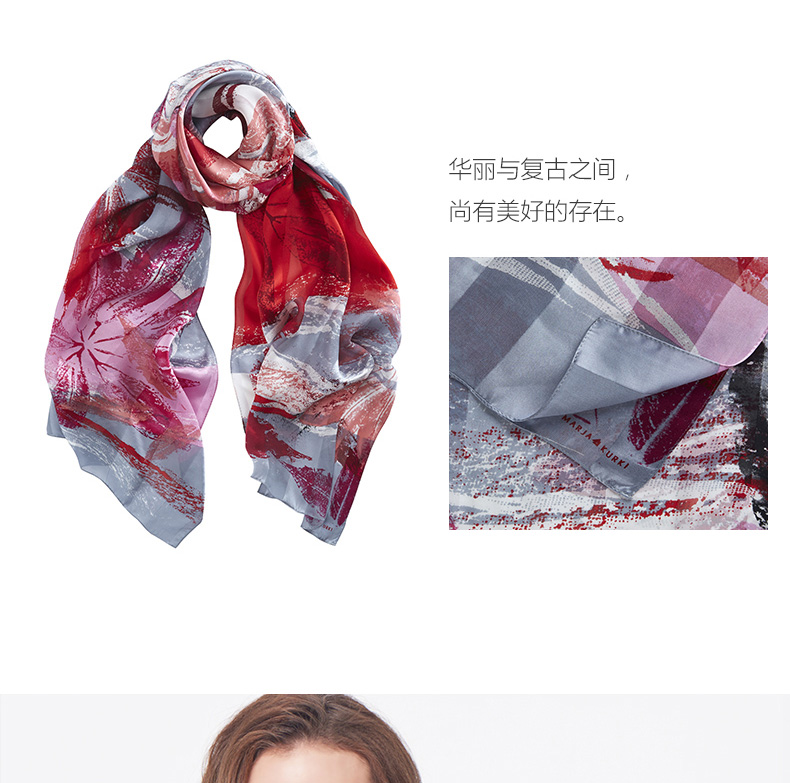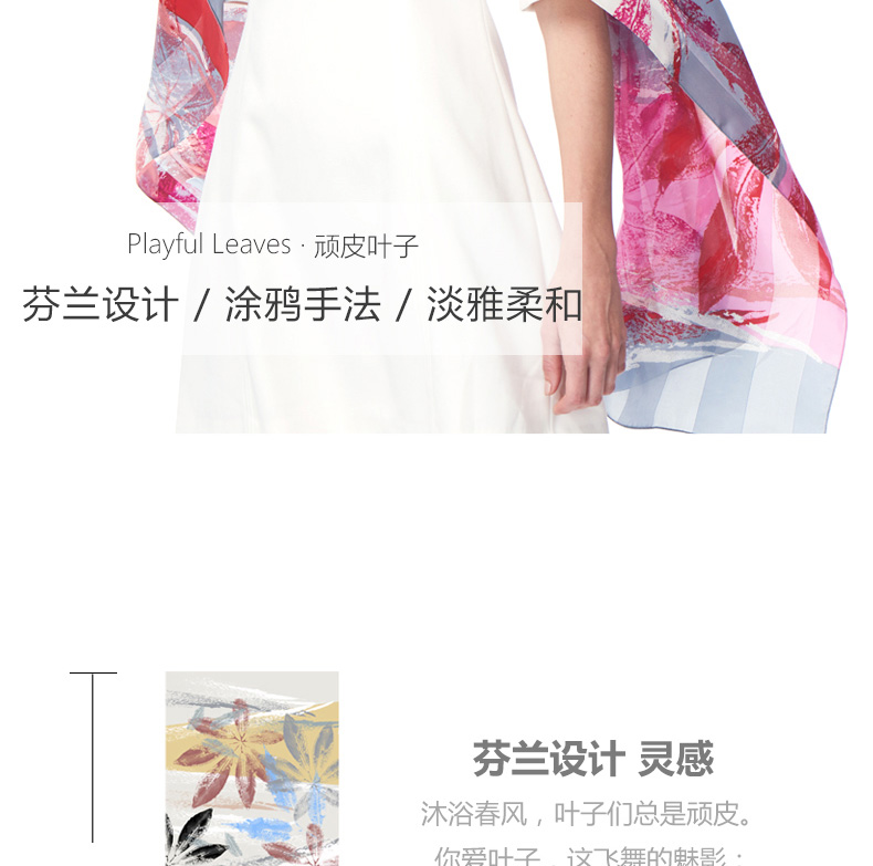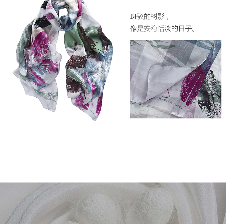 2018新款 玛丽亚古琦(MARJA KURKI)真丝丝巾 女士长丝巾桑蚕丝“顽皮叶子”