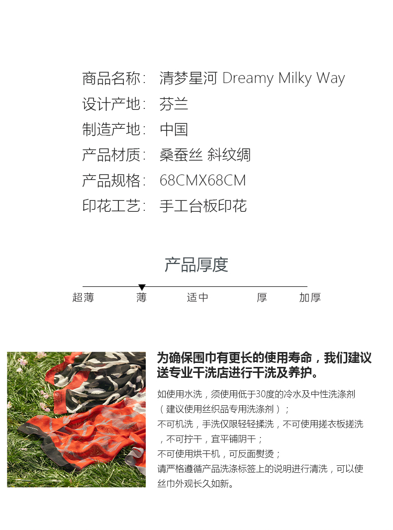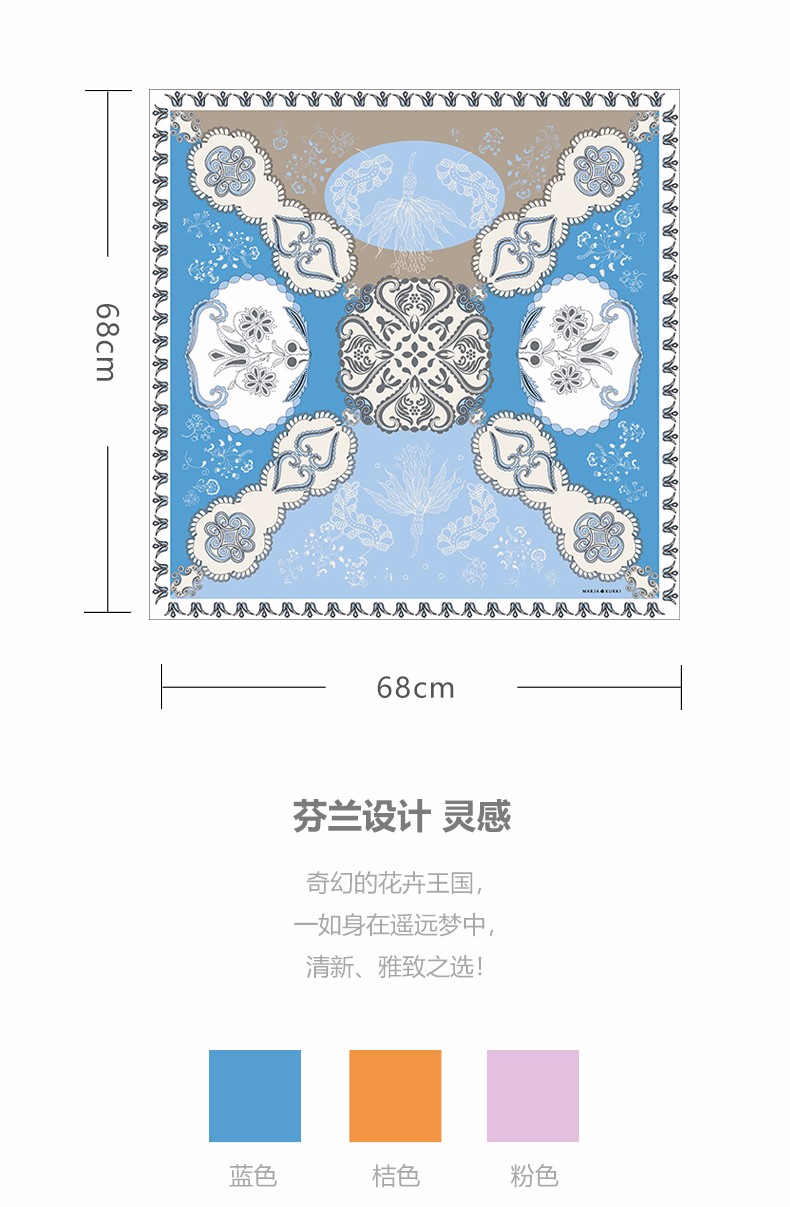 2019春夏新品 玛丽亚古琦(MARJA KURKI)小方巾女 高档真丝中方巾 桑蚕丝小丝巾 清梦星河