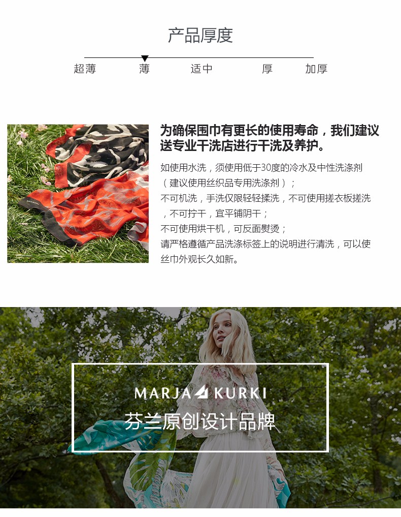 2019春夏新品 玛丽亚古琦(MARJA KURKI)丝巾小方巾女 高档真丝围巾 夏日市场