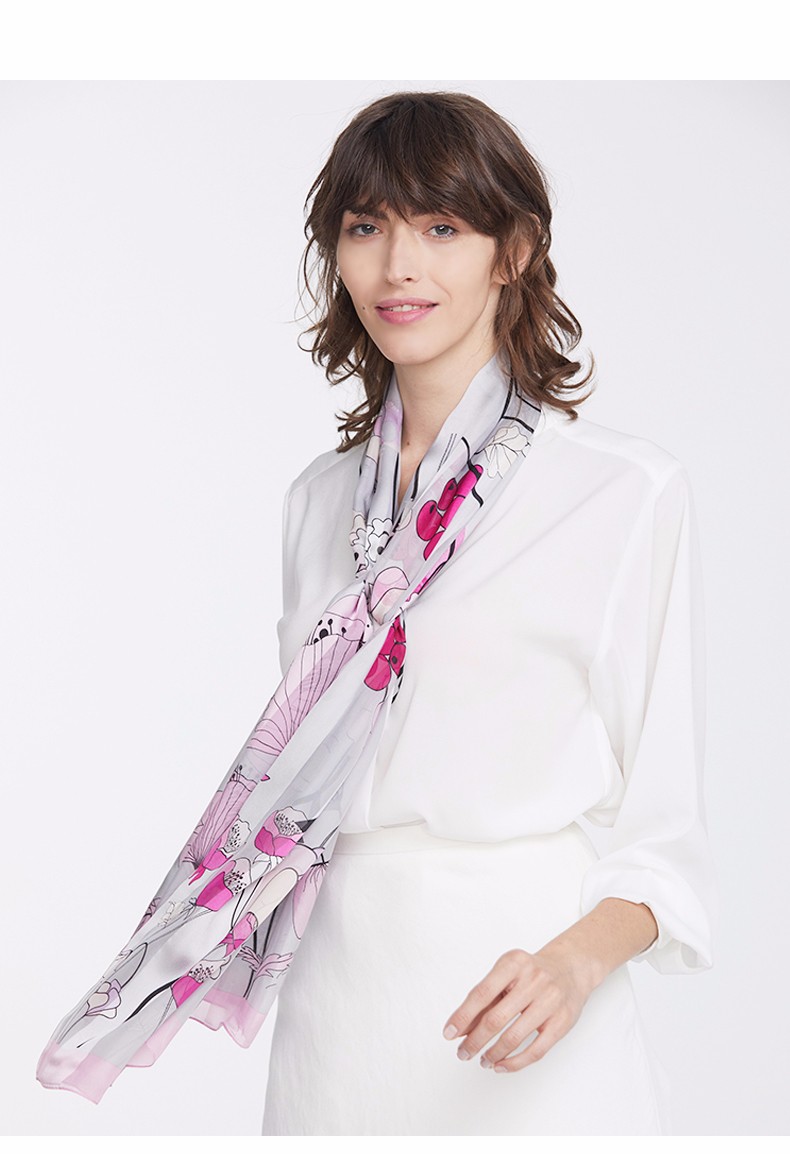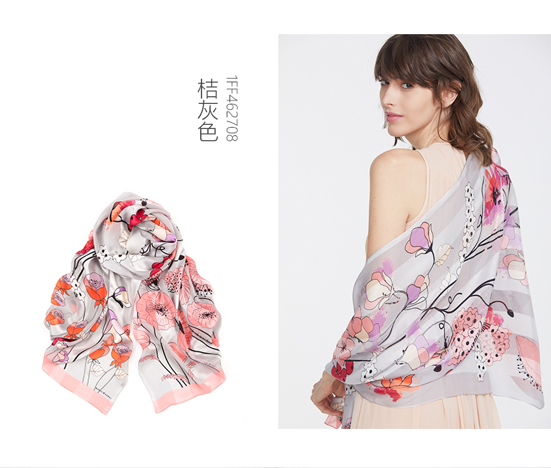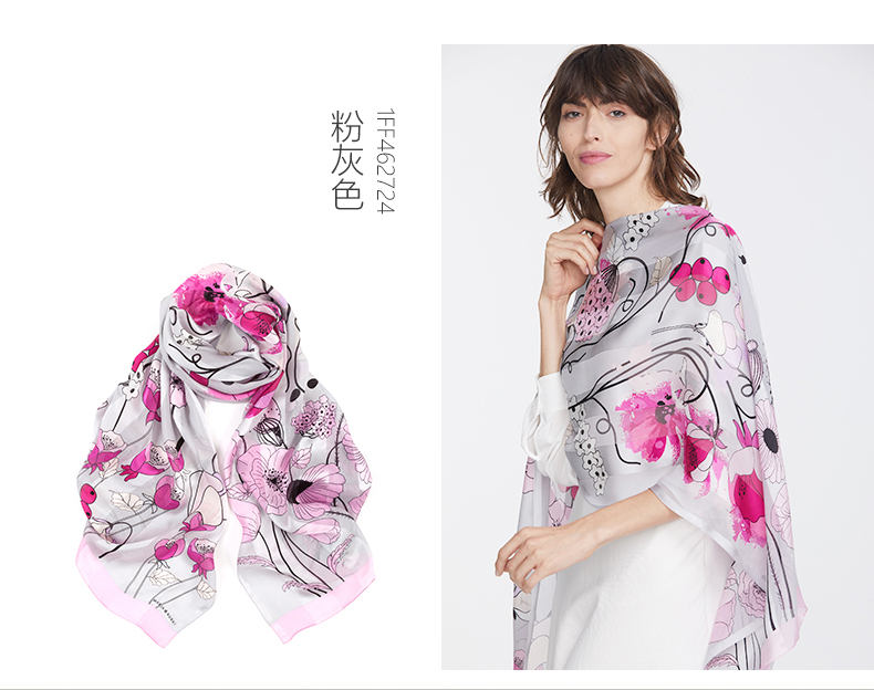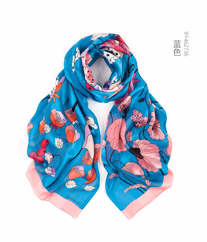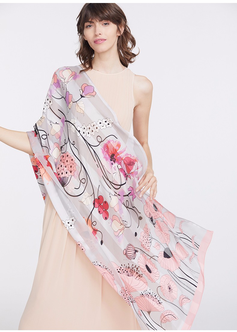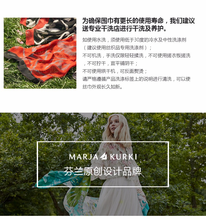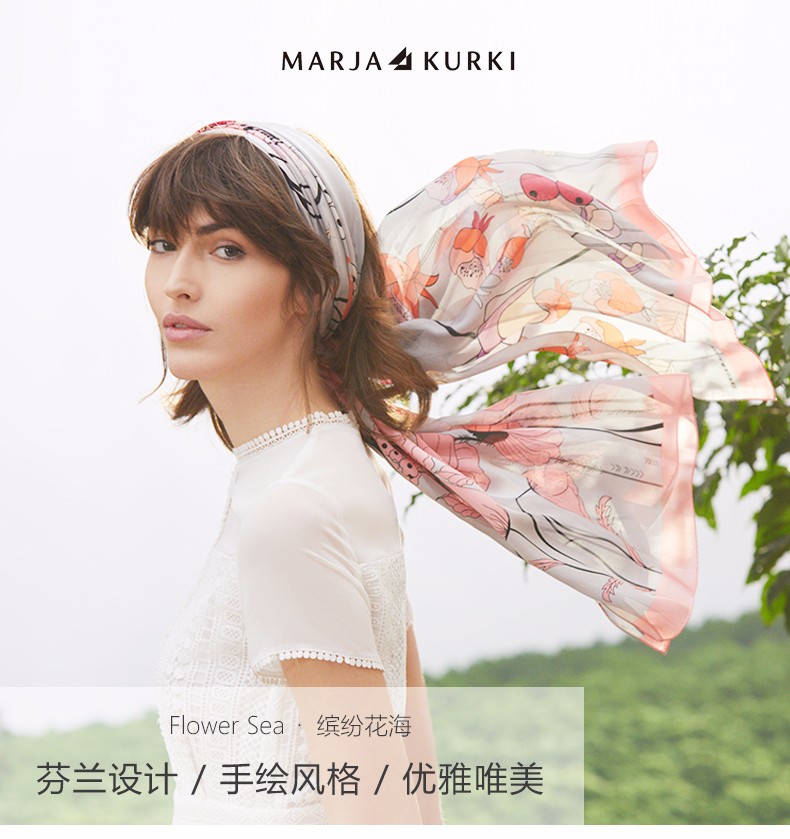 2019春夏新款 玛丽亚古琦(MARJA KURKI)真丝丝巾女士 长巾 桑蚕丝缎条绡长丝巾 缤纷花海