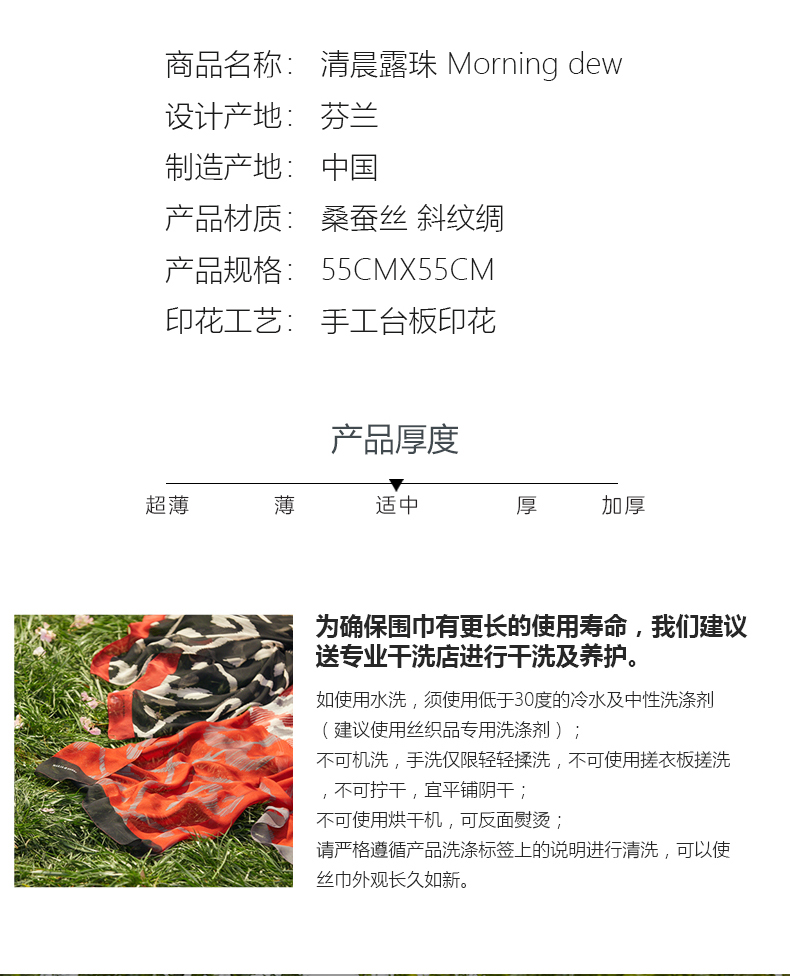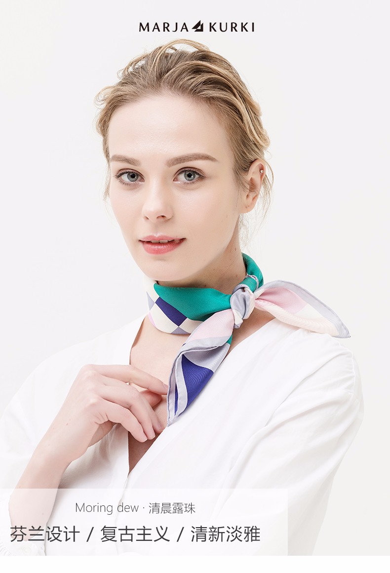 2019春夏新款 玛丽亚古琦(MARJA KURKI)丝巾小方巾女 高档真丝围巾 桑蚕丝方巾清晨露珠