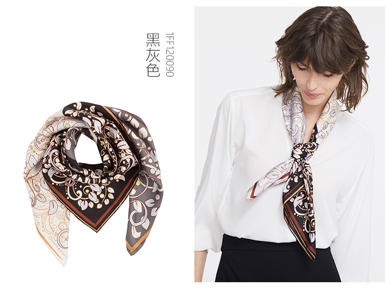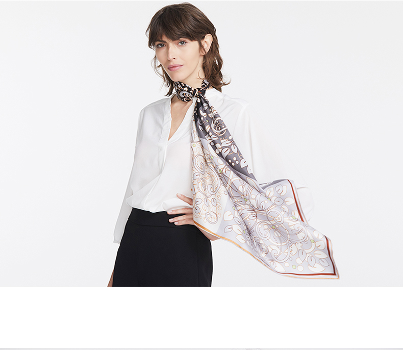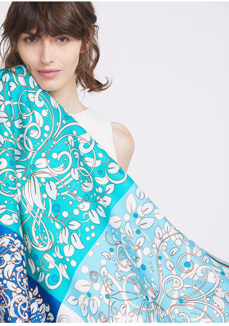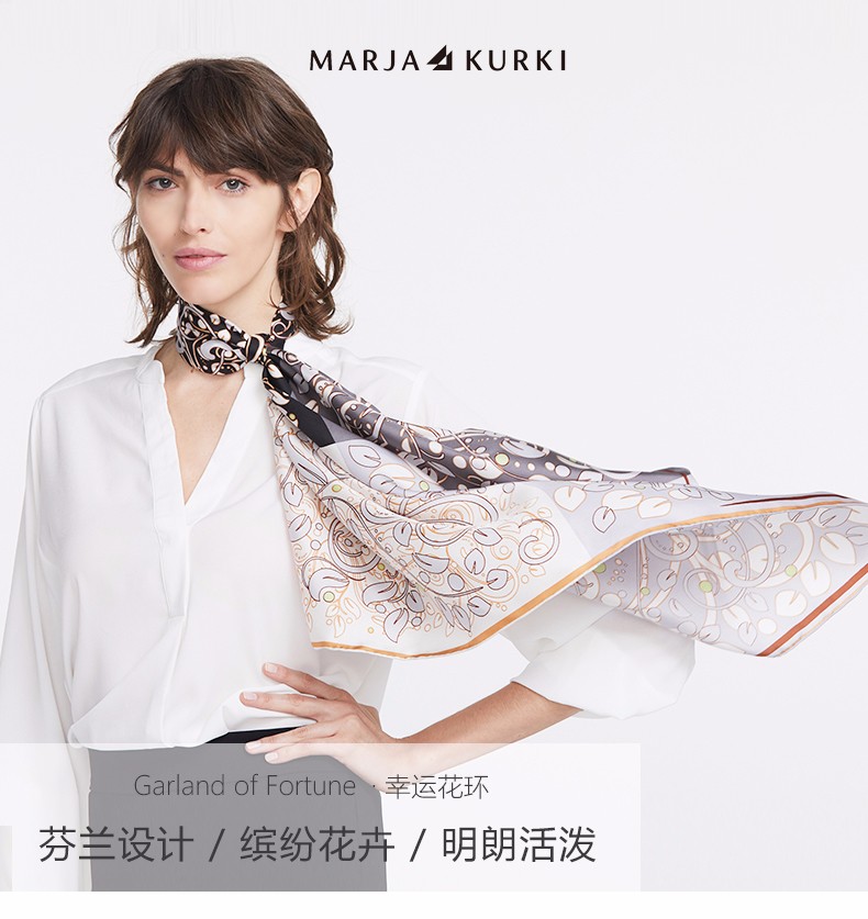 2019春夏新款 玛丽亚.古琦(MARJA KURKI)真丝丝巾女士大方巾 高档桑蚕丝长巾 斜纹绸巾工艺 幸运花环