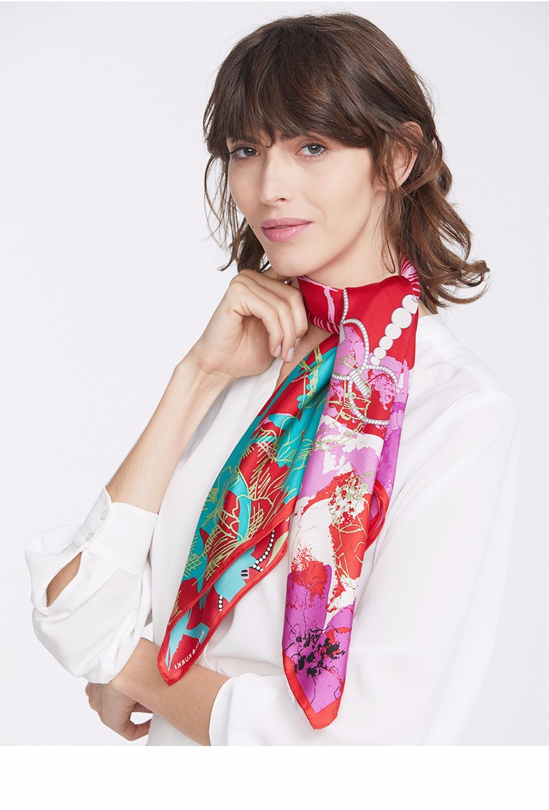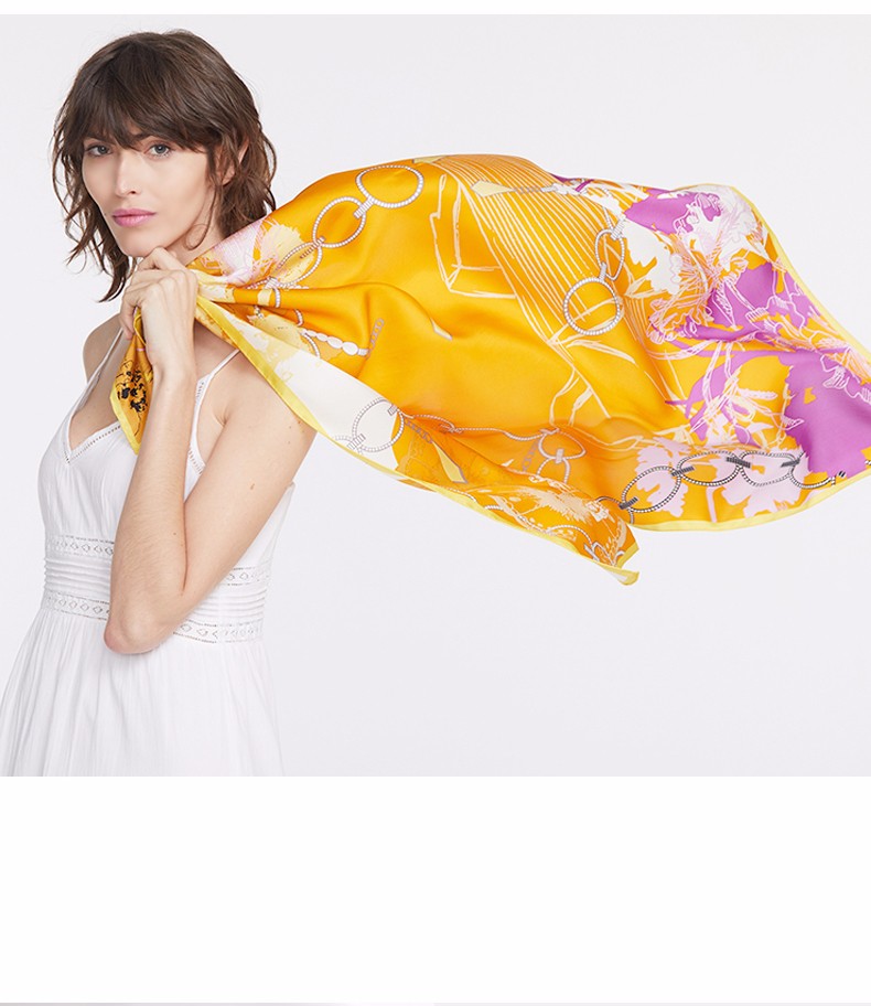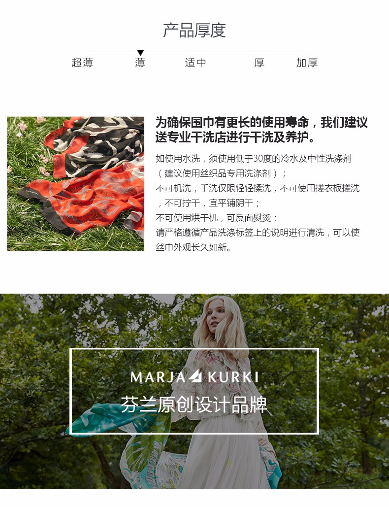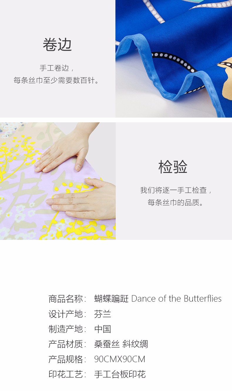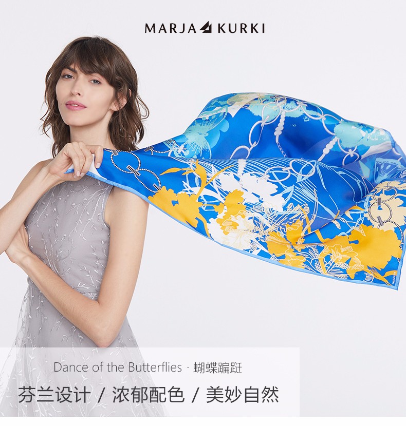 2019春夏新款 玛丽亚.古琦(MARJA KURKI)真丝丝巾女士大方巾 高档桑蚕丝长巾 斜纹绸巾工艺 蝴蝶翩跹
