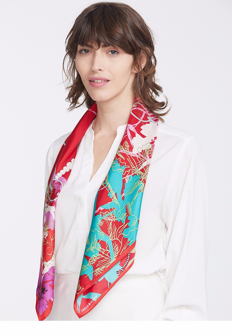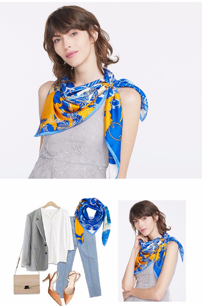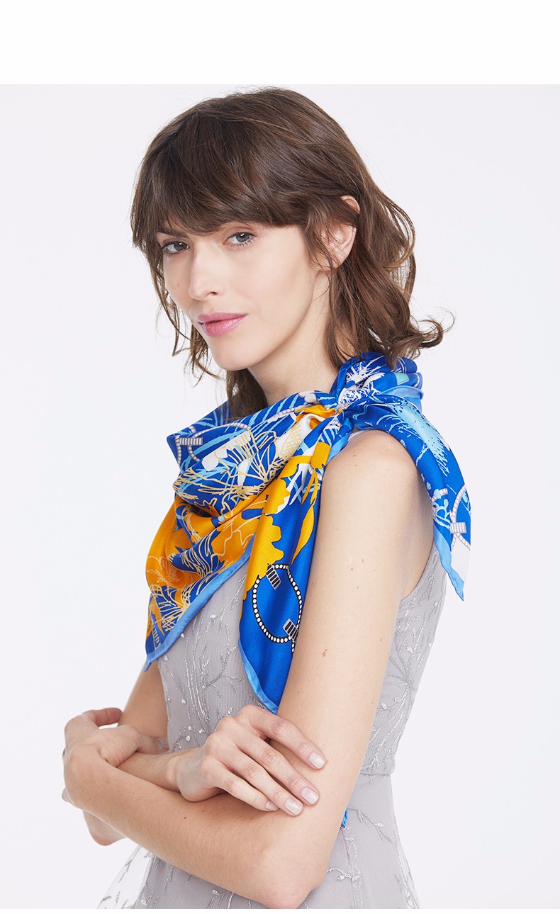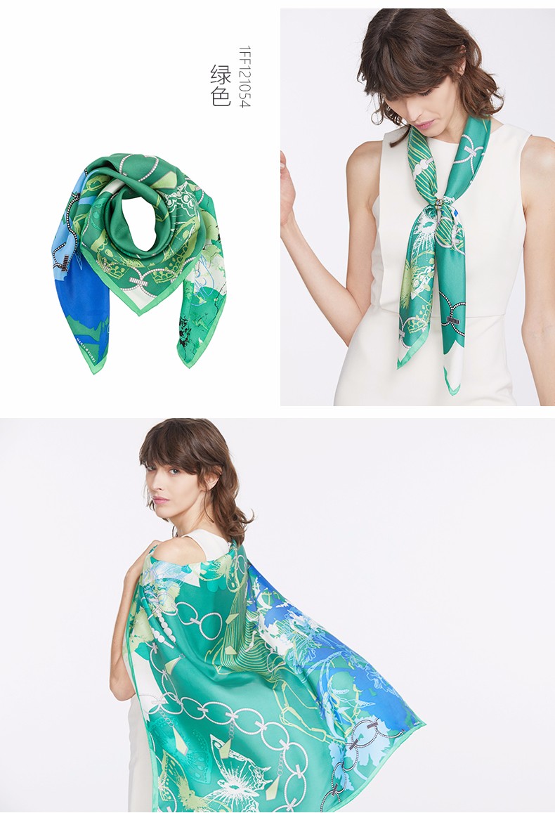 2019春夏新款 玛丽亚.古琦(MARJA KURKI)真丝丝巾女士大方巾 高档桑蚕丝长巾 斜纹绸巾工艺 蝴蝶翩跹