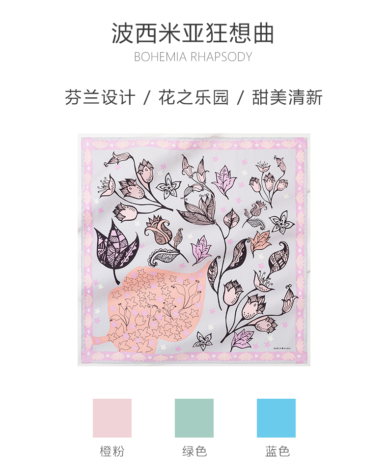 2020春夏新款 玛丽亚古琦(MARJAKURKI)真丝丝巾 波西米亚狂想曲