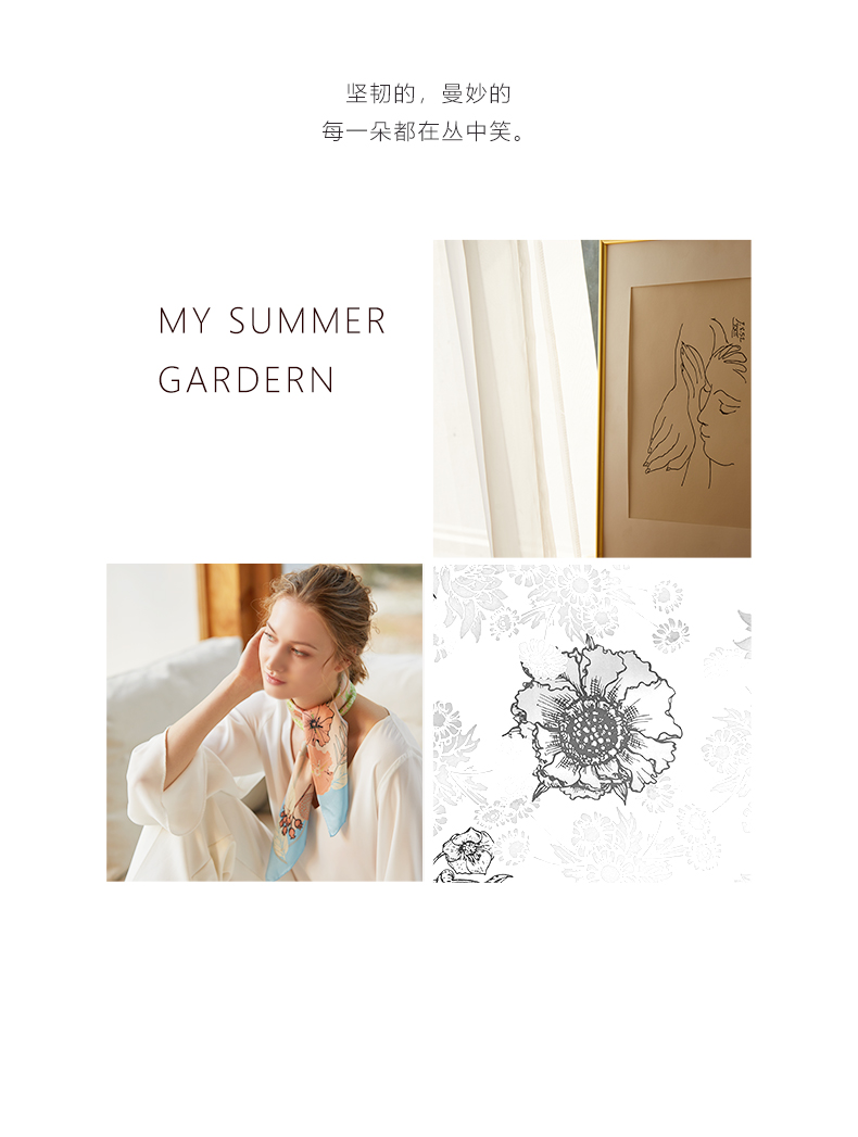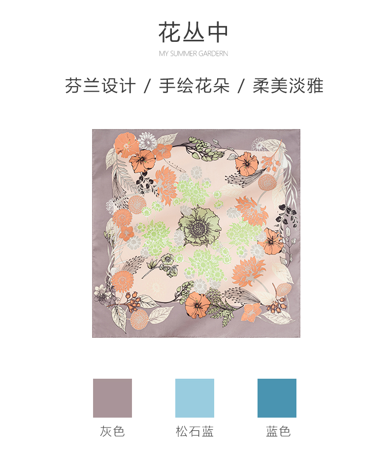 2020春夏新款 玛丽亚古琦(MARJAKURKI)真丝丝巾 花丛中