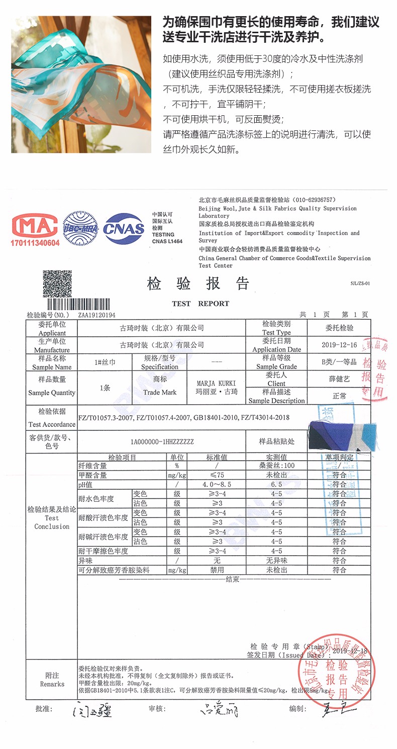 2020春夏新款 玛丽亚古琦(MARJAKURKI)真丝丝巾 静美自然