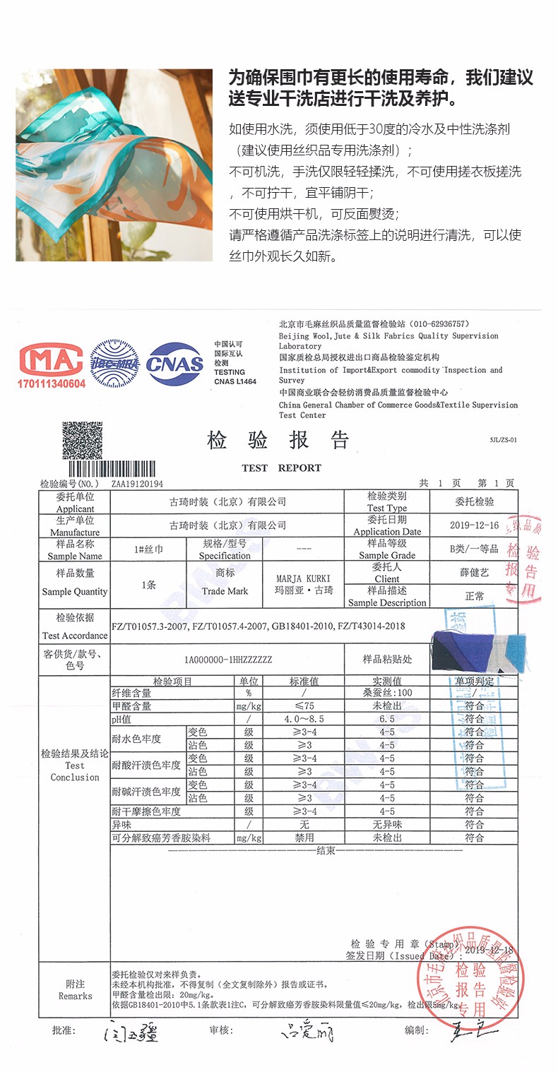 2020春夏新款 玛丽亚古琦(MARJAKURKI)真丝丝巾 美妙时光