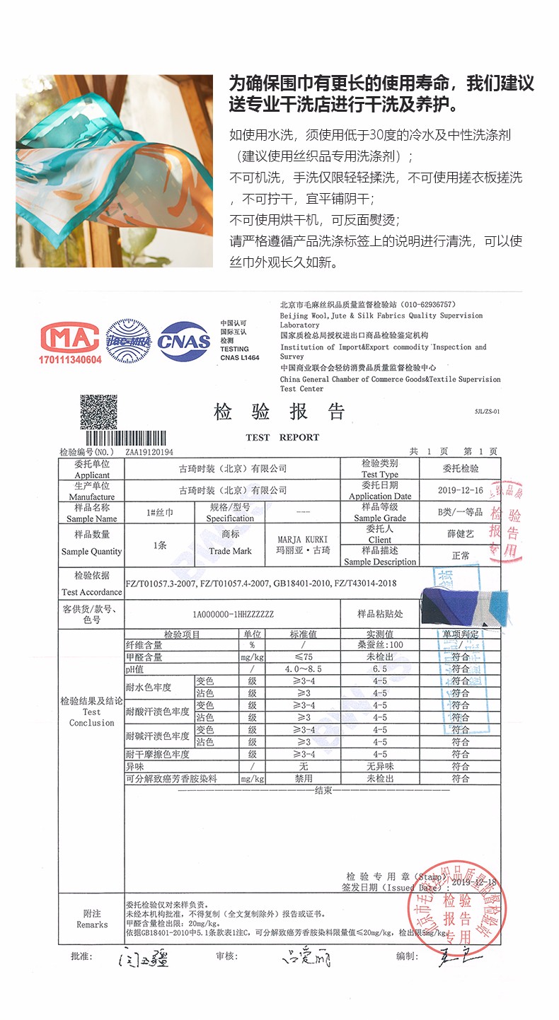 2020春夏新款 玛丽亚古琦(MARJAKURKI)真丝丝巾 希望与梦想