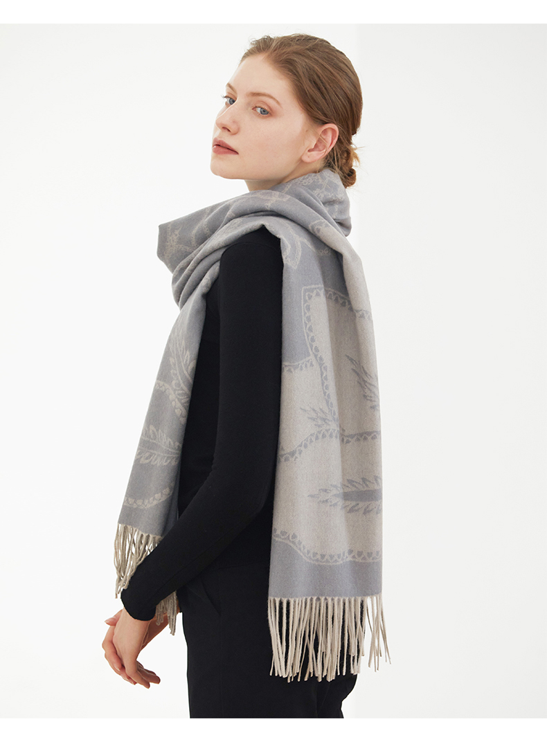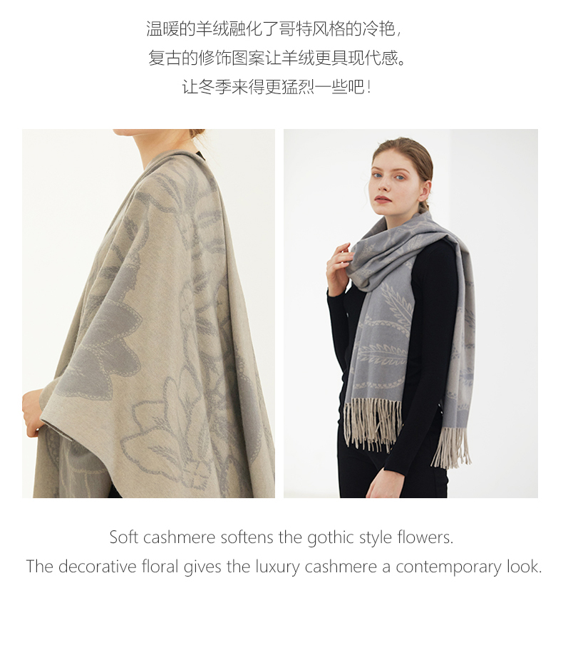 温暖的羊绒融化了哥特风格的冷艳, 复古的修饰图案让羊绒更具现代感。让冬季来得更猛烈一些吧!