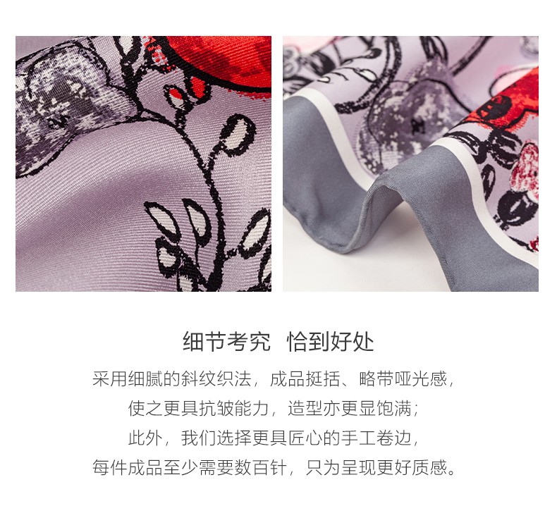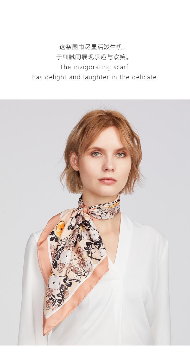 这条丝巾尽显活泼生机,于细腻间展现乐趣与欢笑。