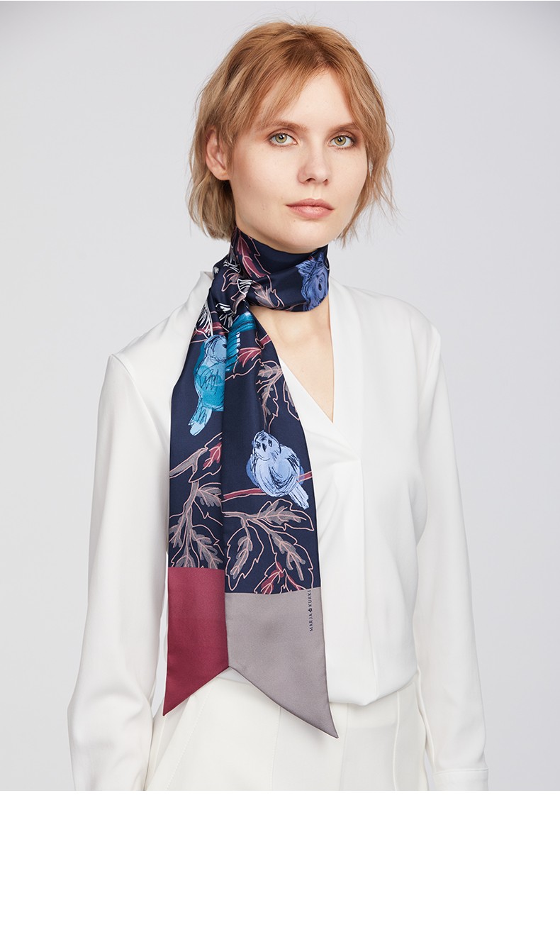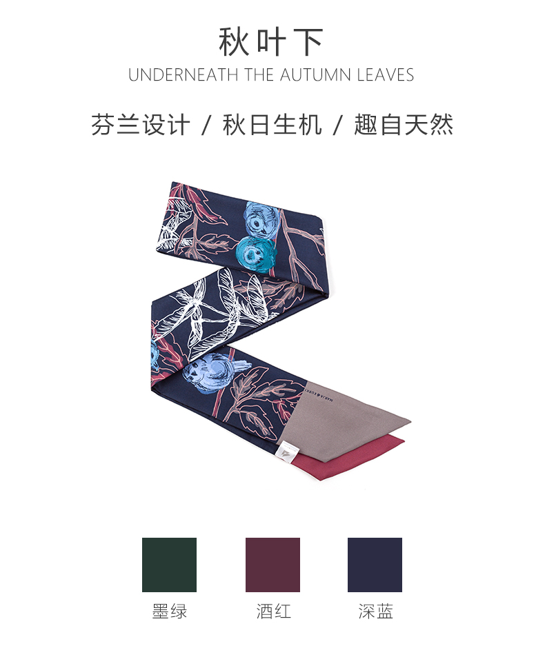 2021秋冬新款 玛丽亚古琦(MARJAKURKI)真丝丝巾 树叶下