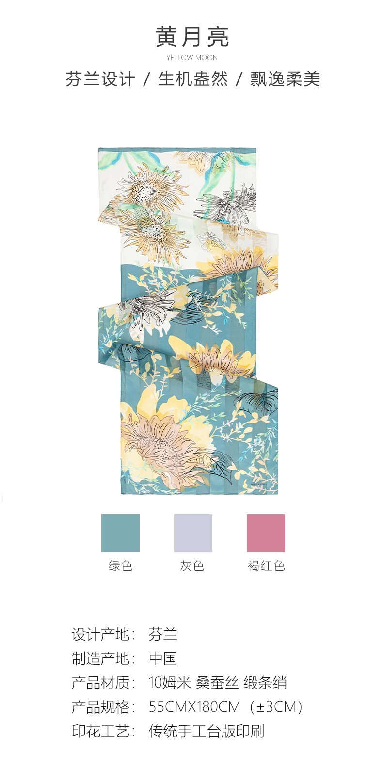 2022新款 玛丽亚古琦(MARJAKURKI)真丝丝巾 黄月亮