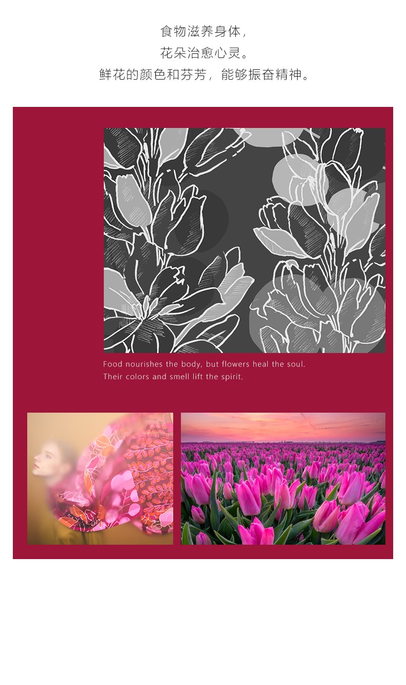 食物滋养身体,花朵治愈心灵。鲜花的颜色和芬芳,能够振奋精神。