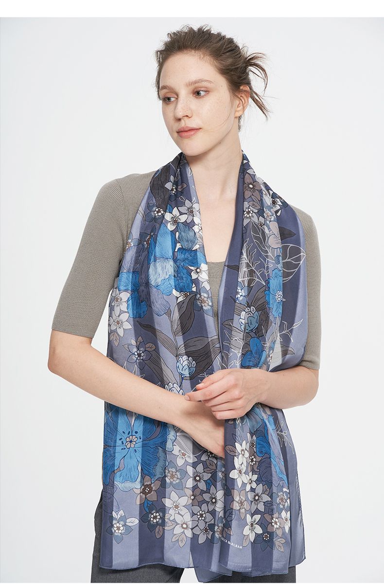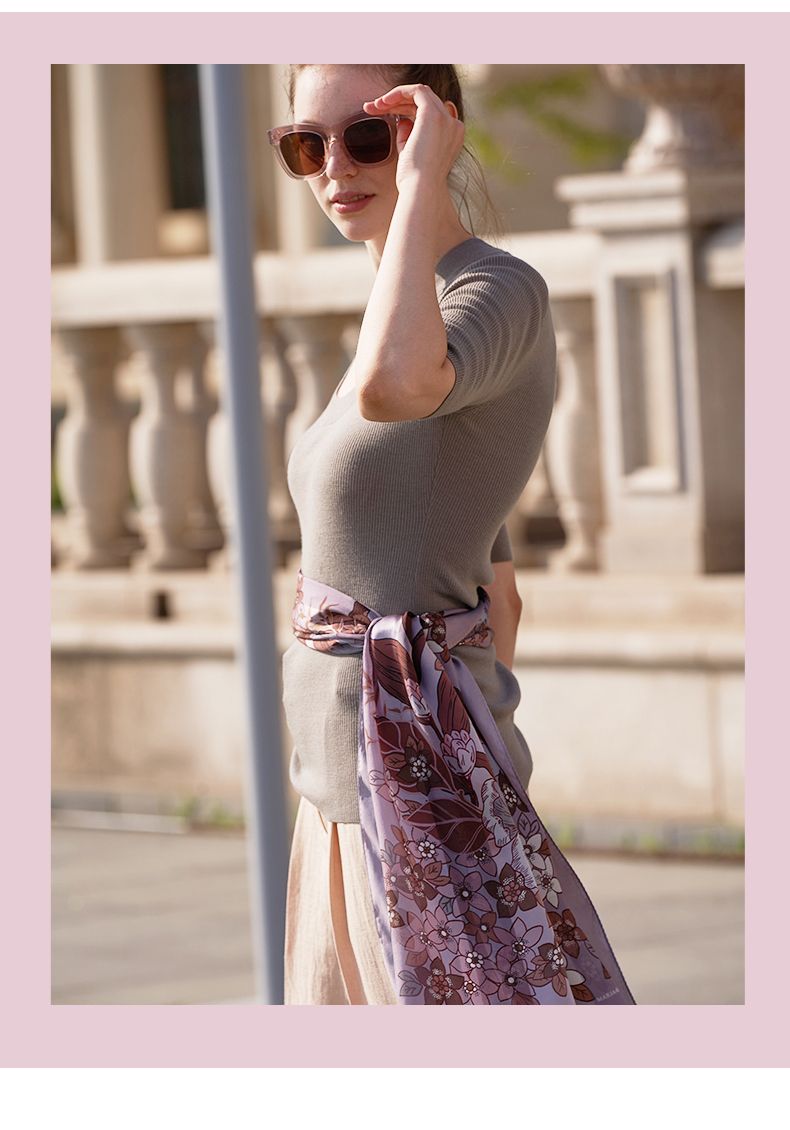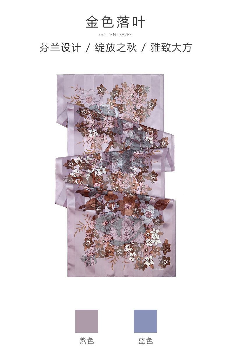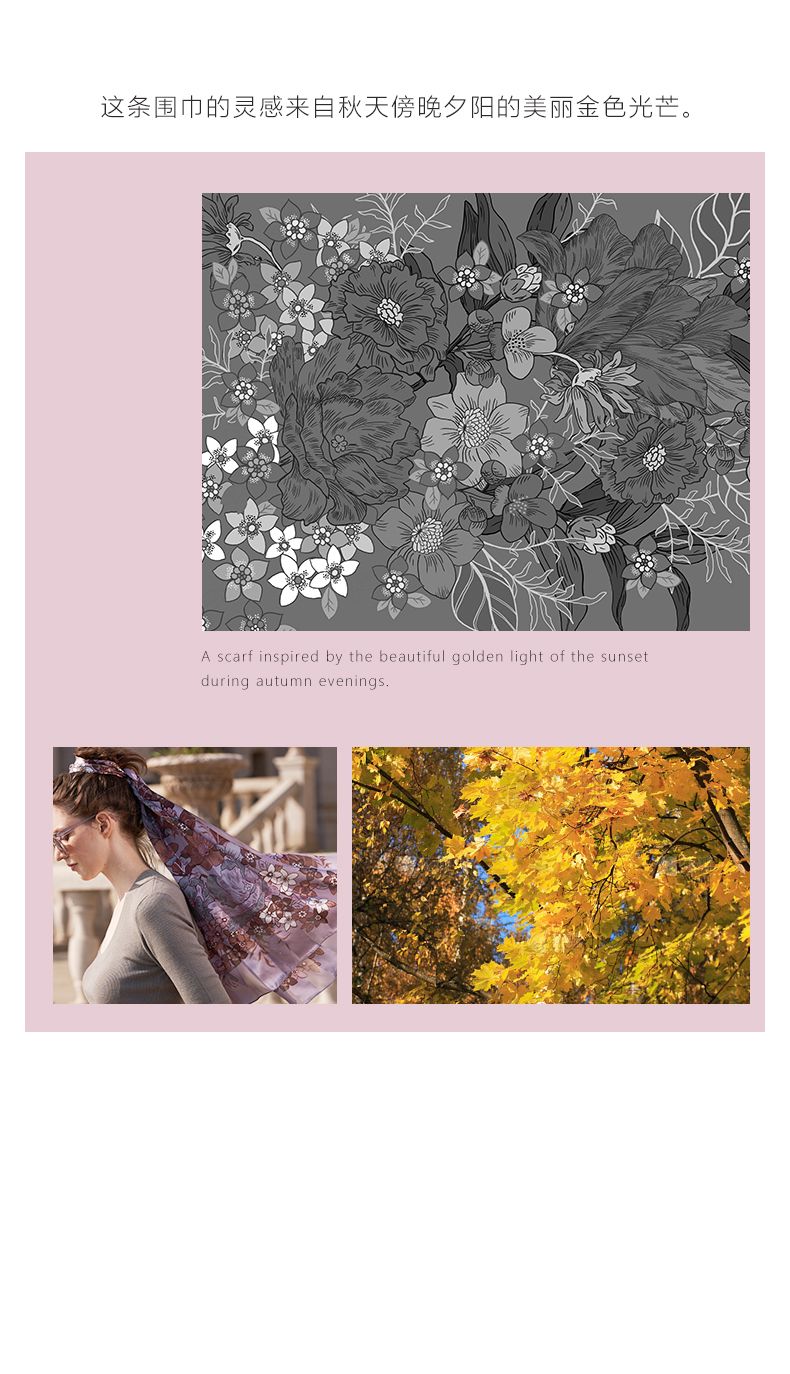 这条丝巾的灵感来自秋天傍晚夕阳的美丽金色光芒。