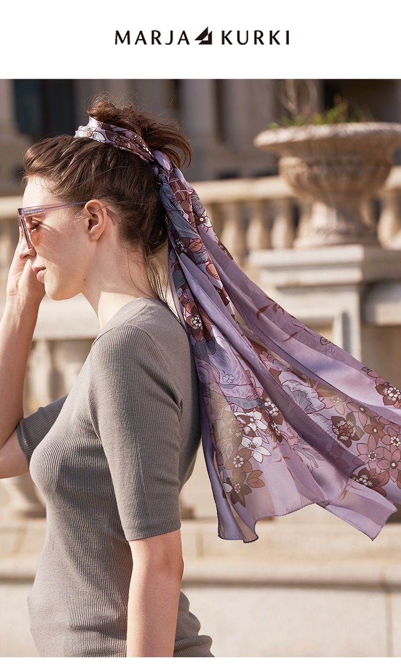 2023新款 玛丽亚古琦(MARJA KURKI)真丝丝巾 金色落叶