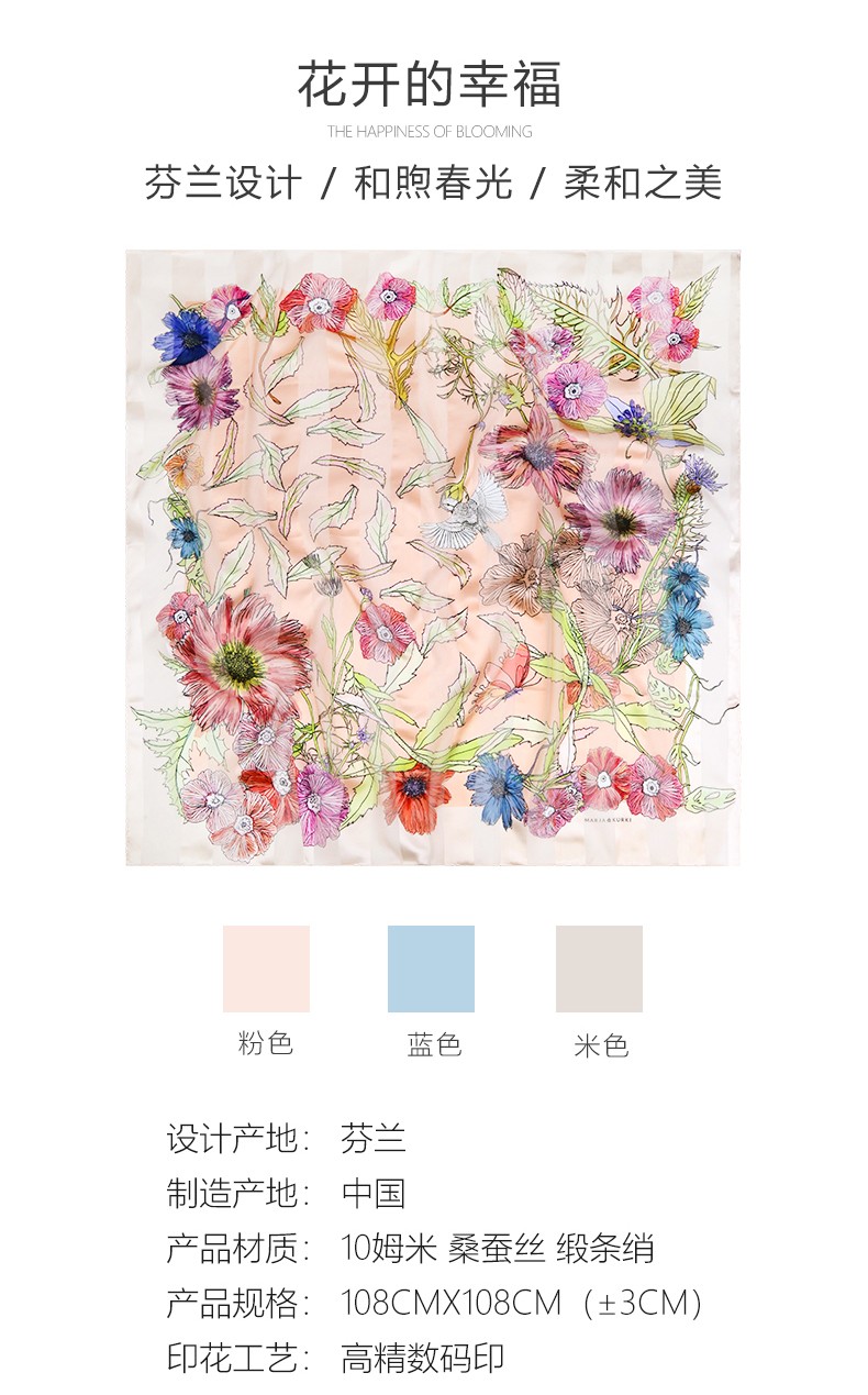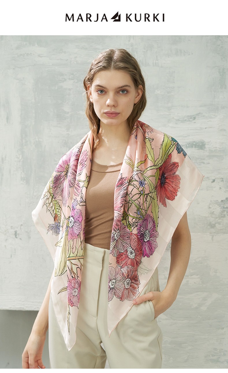 2024新款 玛丽亚古琦(MARJAKURKI)真丝丝巾【花开的幸福】