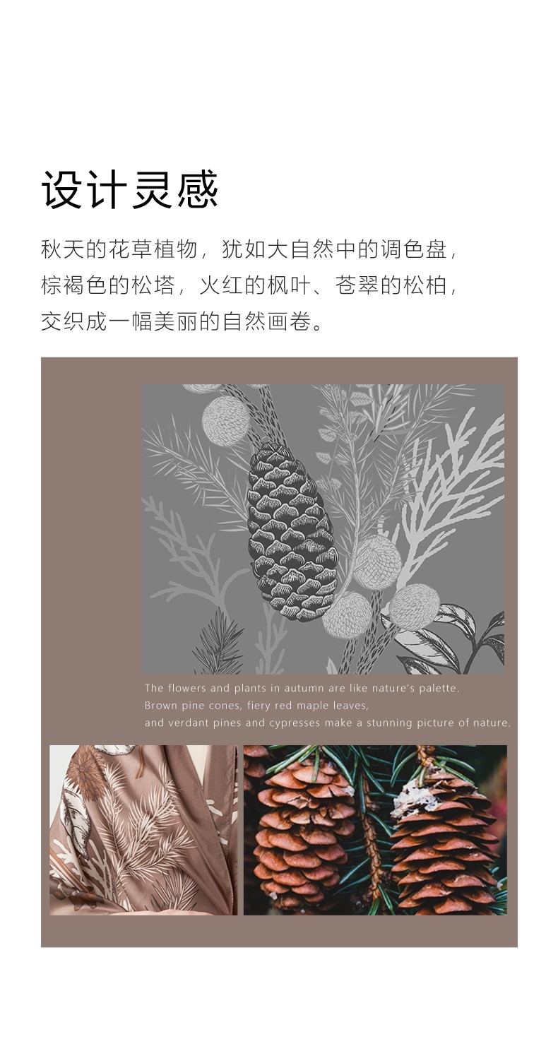 秋天的花草植物,犹如大自然中的调色盘,棕褐色的松塔,火红的枫叶、苍翠的松柏,交织成一幅美丽的自然画卷。