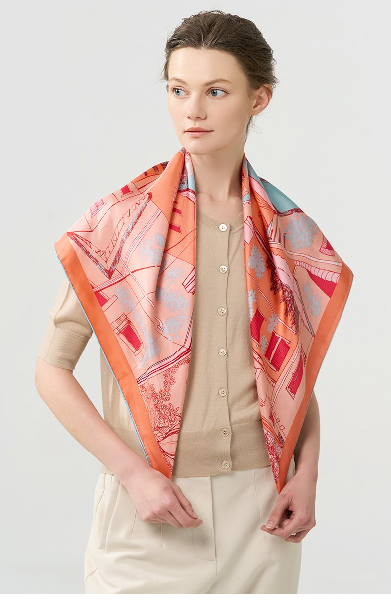 2024新款 玛丽亚古琦(MARJAKURKI)真丝丝巾【意大利小镇】