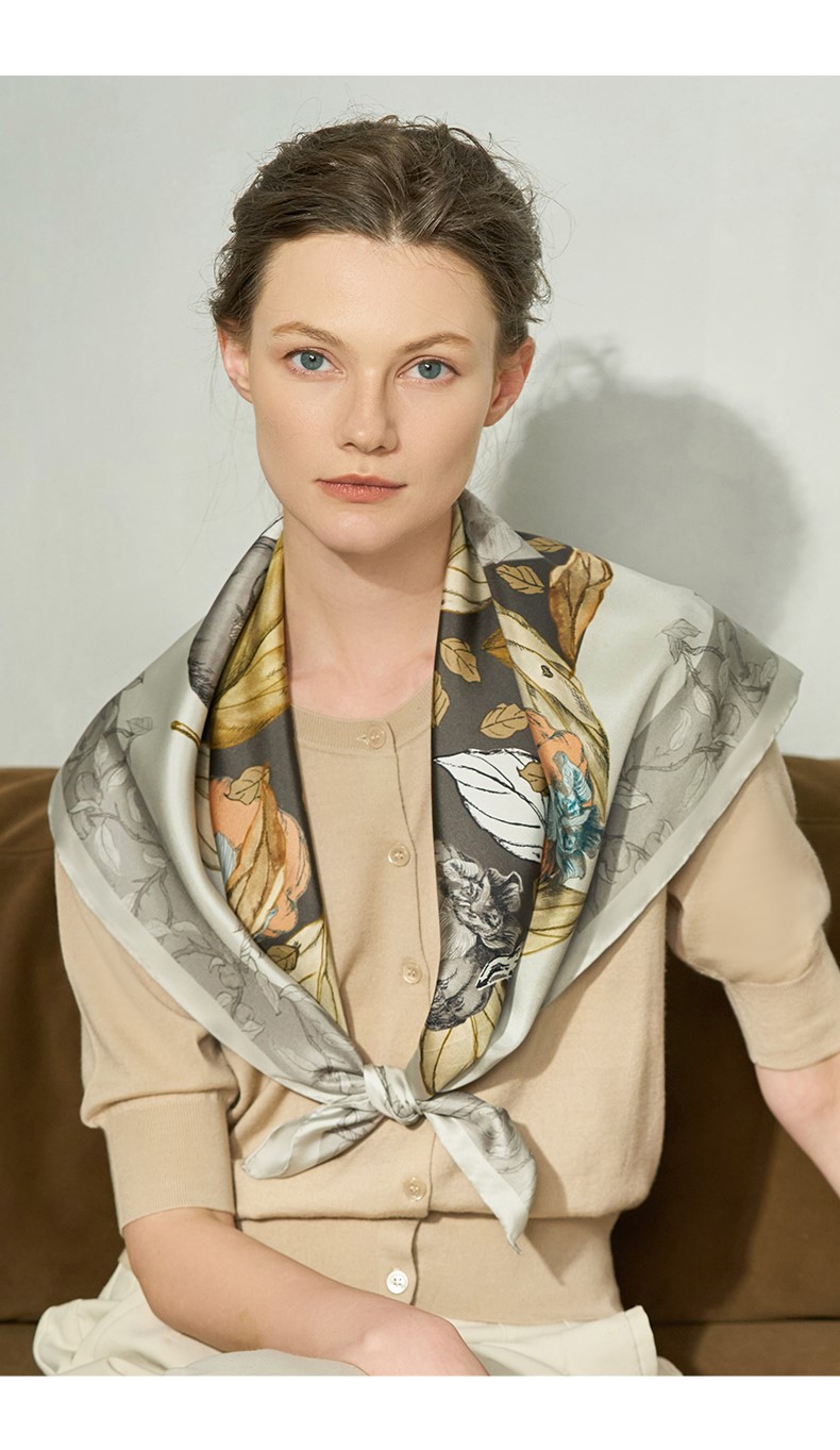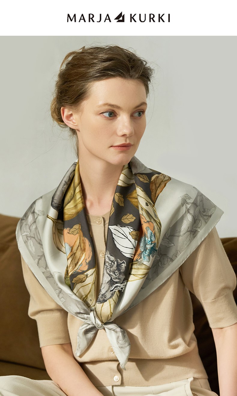 2024新款 玛丽亚古琦(MARJAKURKI)真丝丝巾【秋天的柿子】