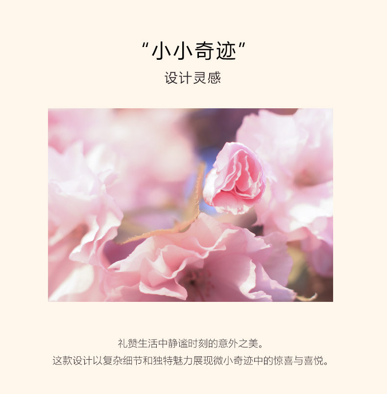 礼赞生活中静谧时刻的意外之美。这款设计以复杂细节和独特魅力展现微小奇迹中的惊喜与喜悦。