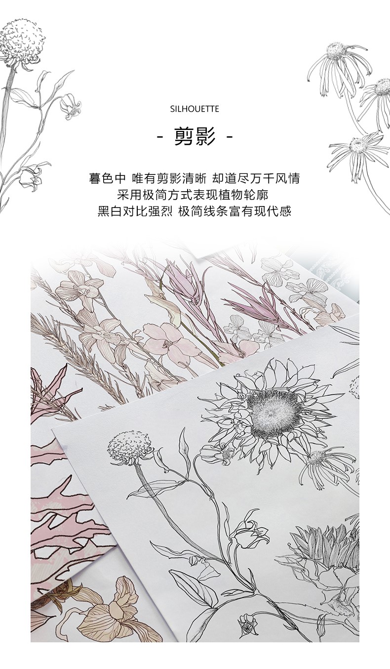 暮色中,唯有剪影清晰,却道尽万千风情。 采用极简方式表现植物轮廓,背景朦胧,前景清晰,黑白对比强烈,富有现代感。