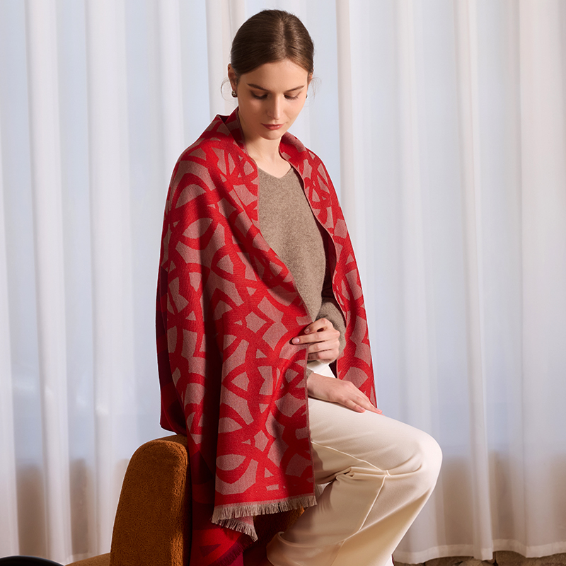 玛丽亚古琦(MARJA KURKI)山羊绒围巾披肩女 双面提花大披肩“双面佩斯力”