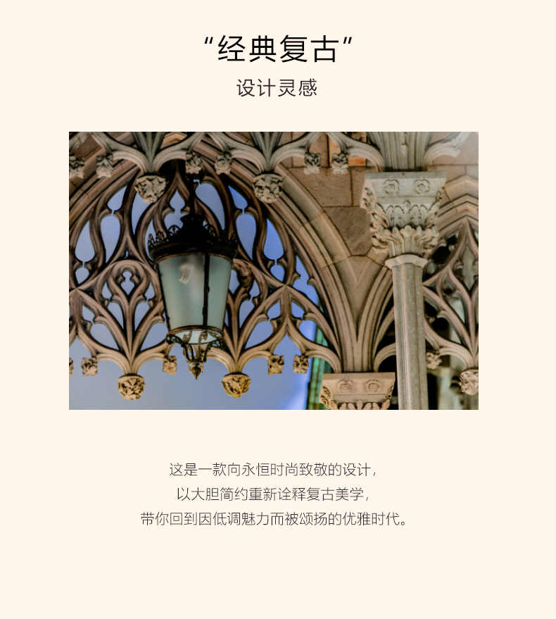 这是一款向永恒时尚致敬的设计,以大胆简约重新诠释复古美学,带你回到因低调魅力而被颂扬的优雅时代。